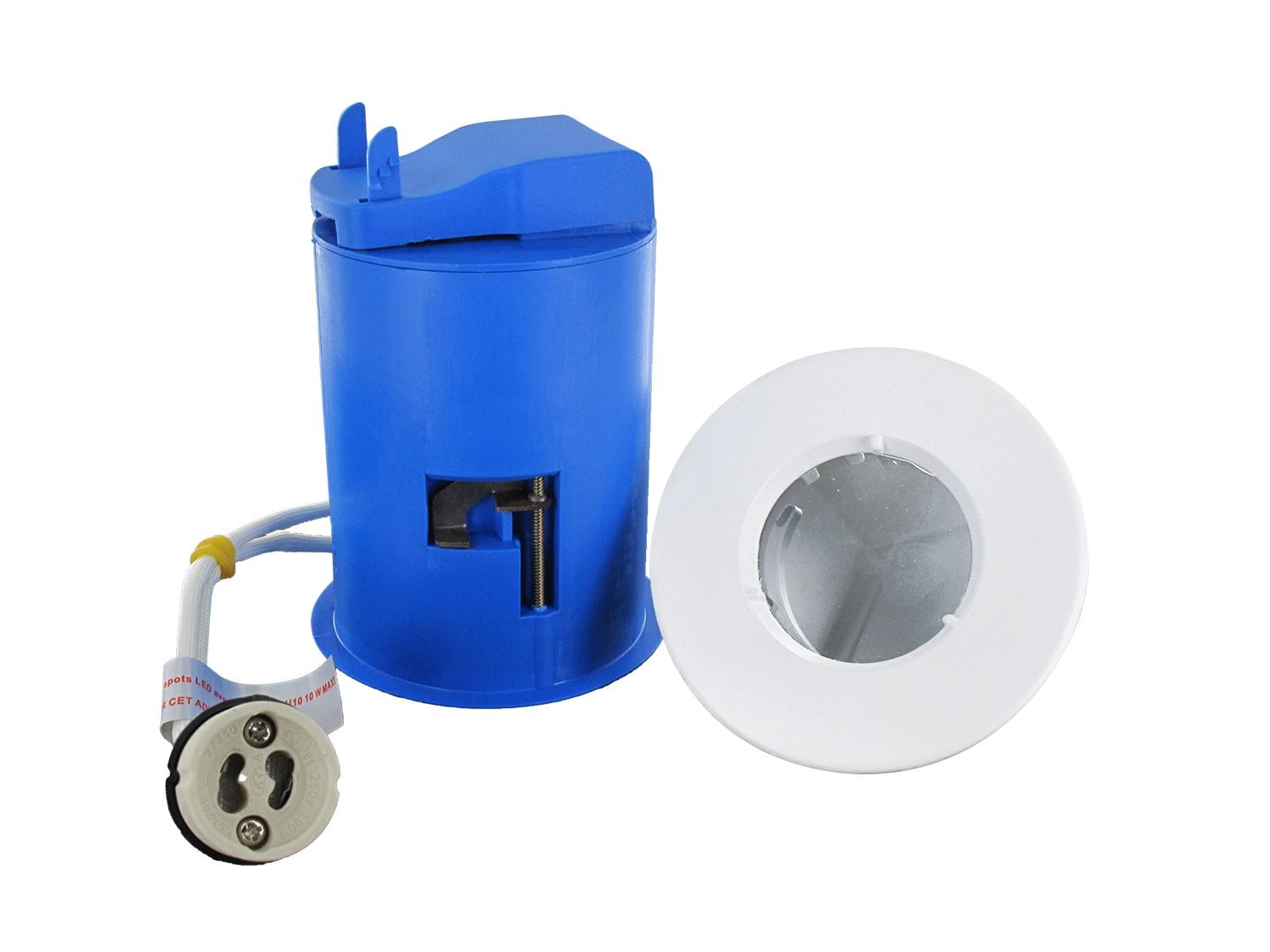 SPOTBOX II No Air s’utilise aussi bien dans le neuf que la rénovation. Livrée avec sa douille GU 10 précâblée (équipée d’un thermofusible). La collerette de finition est démontable avec outil fourni pour un relamping rapide.