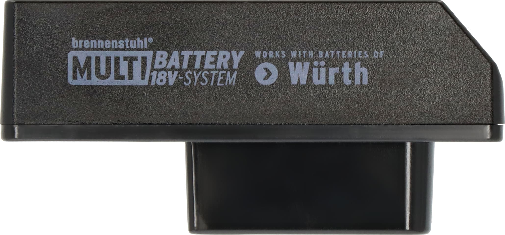 L'adaptateur Würth du Multi Battery 18V System de brennenstuhl® permet l'utilisation de batteries 18V rechargeable sur l'un des projecteurs de chantier LED de la gamme Multi Battery. Fixez l'adaptateur, branchez la batterie et commencez à travailler - en