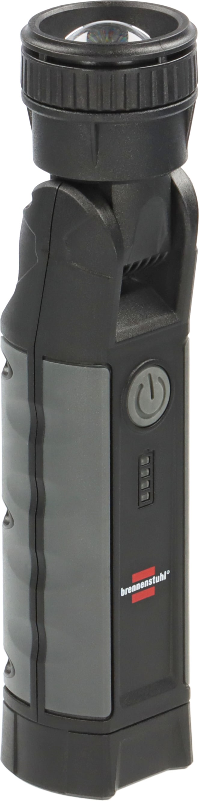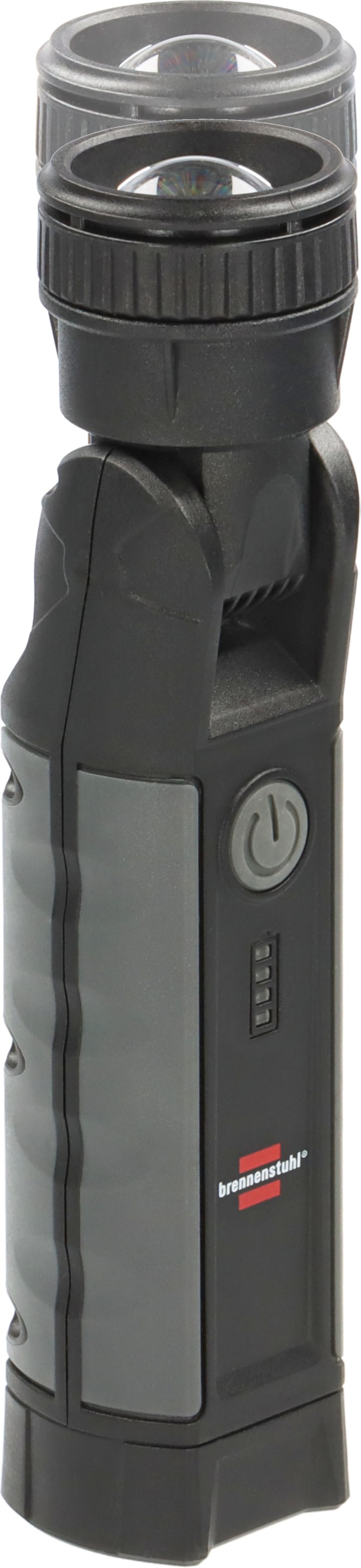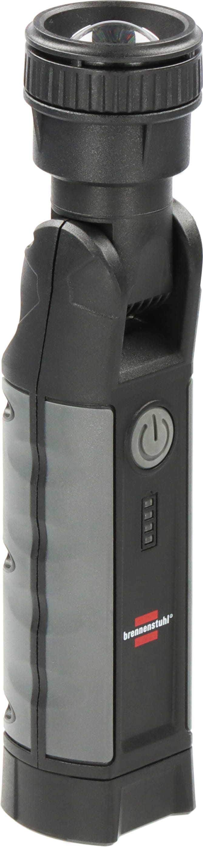 La baladeuse TL 1000 ACW de brennenstuhl® Professional dispose d'une batterie Li-Ion rechargeable, facilement remplaçable et de la technologie de recharge par induction. La tête de la torche permet une inspection des lieux difficiles d'accès car elle est