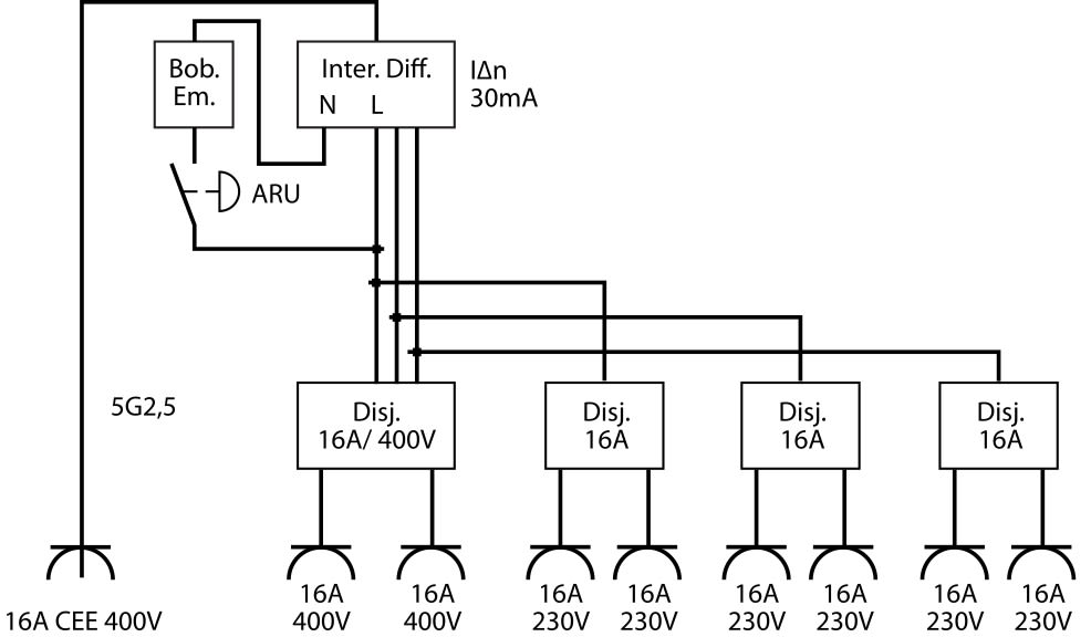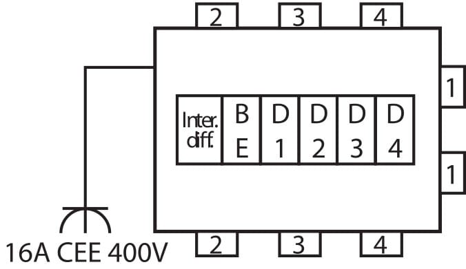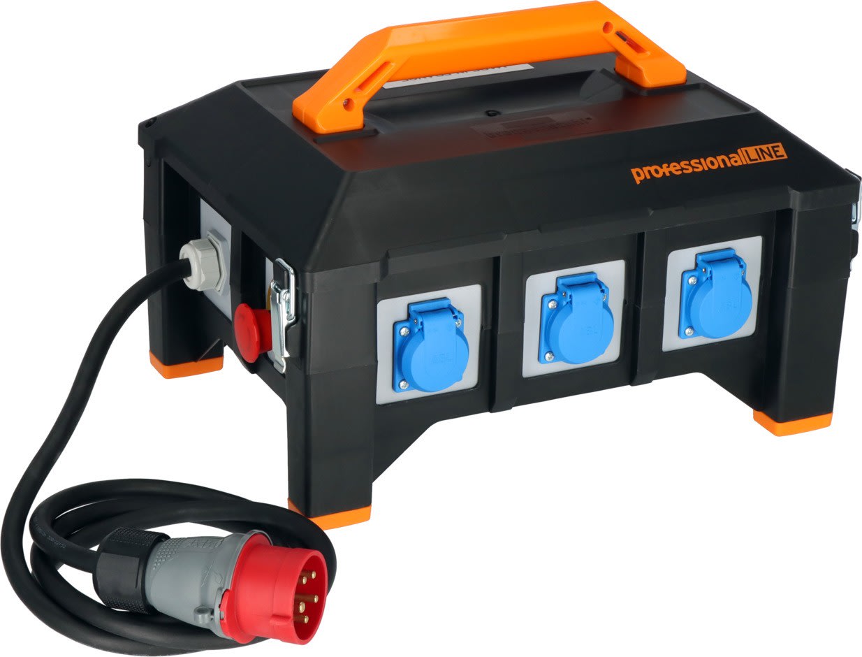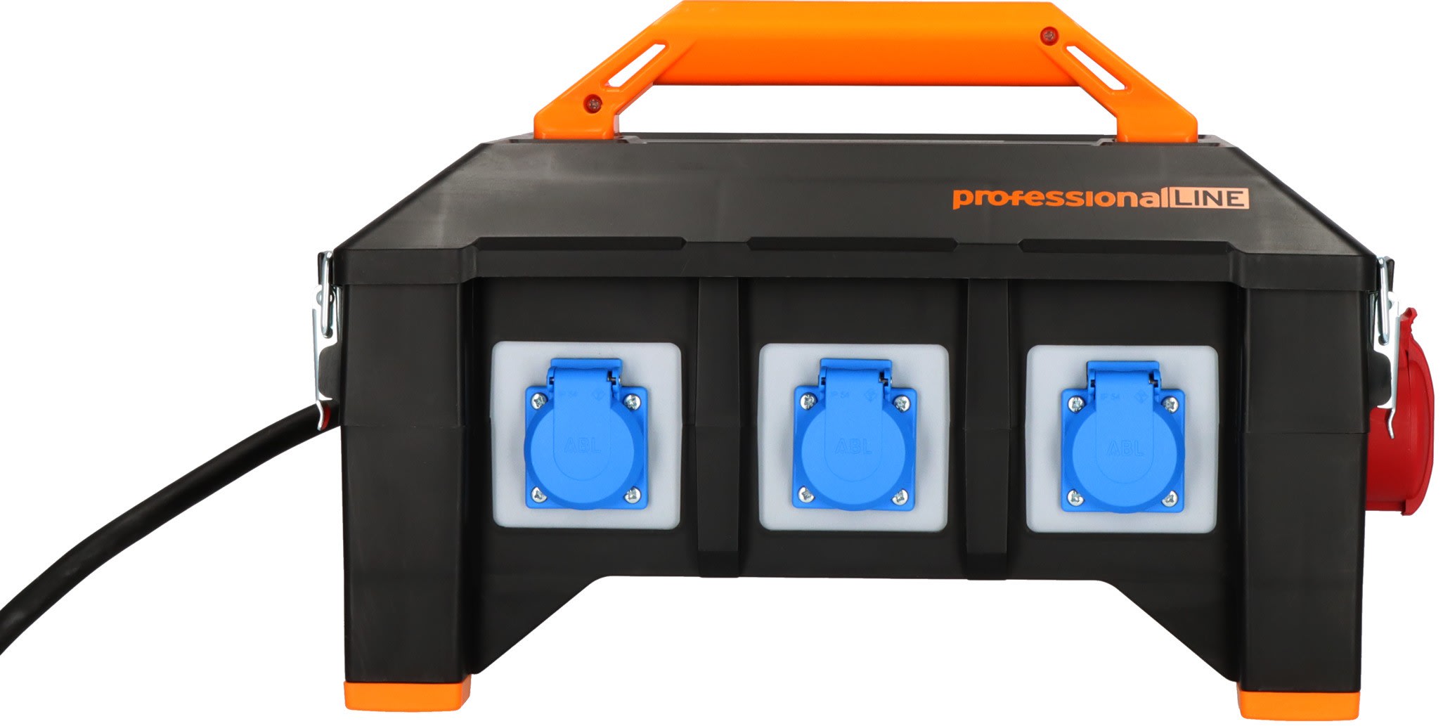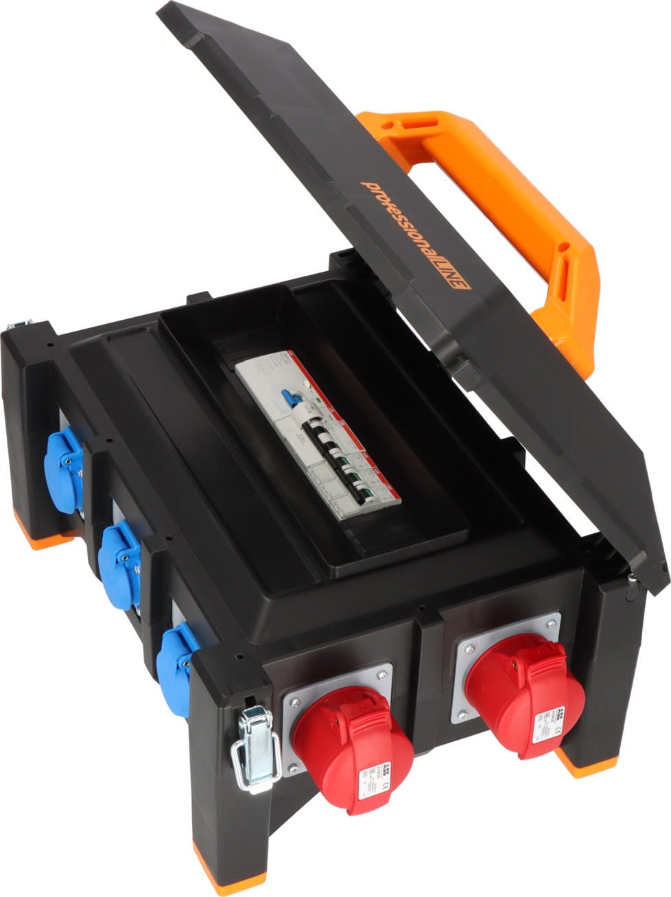 Le coffret de chantier professionalLINE CC 2T6M/16/AU de brennenstuhl®, doté de 2m de câble H07RN-F 5G2,5 performe par sa qualité et sa sécurité. Ce coffret électrique est pratique, robuste et adapté à un usage professionnel sur chantier et en atelie Coffret de chantier conçu pour une utilisation en extérieur, 2m de câble néoprène (H07RN-F 5G2,5) résistant aux hydrocarbures, boîtier protégé contre les projections d'eau de toutes directions (IP44) Coffret doté de: 1 bouton d'arrêt d'urgence, 1 interrupteur différentiel 30mA (230/415V 25A 4 pôles Type AC), disjoncteurs divisionnaires : 1x16A/415V 4 pôles Courbe C + 3x16A/230V 2 pôles Courbe C Tableau électrique provisoire pour atelier ou chantier, large poignée de transport, couvercle équipé de 2 fermetures à levier inoxydables et pieds en caoutchouc antidérapants - 11 KVA puissance max Emboîtement du coffret permettant la superposition de coffrets-2 prises de courant 3P+N+T 16A/415V et 6 prises de courant 2P+T 16A/230V avec clapets à fermeture automatique et 1 fiche 3P+N+T 16A/415V Coffret électrique développé avec un mélange de plastique/élastomère pour un usage professionnel et résistant aux conditions sur chantier difficiles de -30°C à +80°C (en extérieur comme en intérieur)