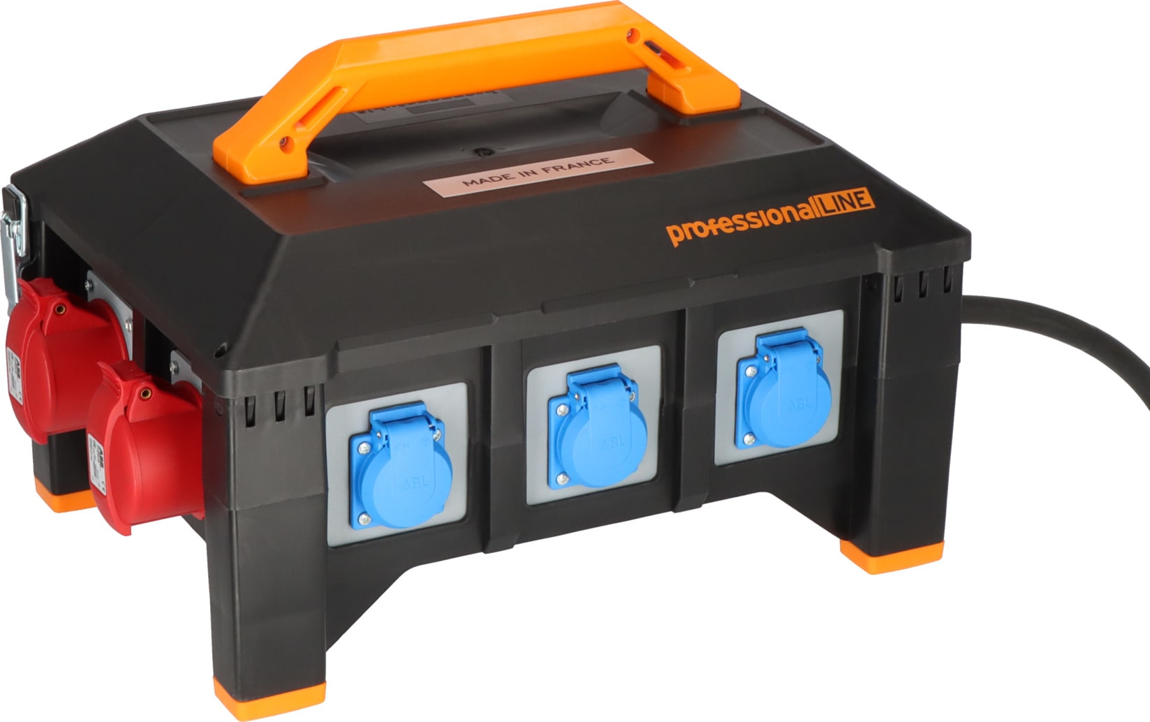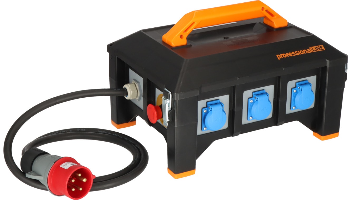 Le coffret de chantier CC 2T6M/32/AU de brennenstuhl® Professional, doté de 2m de câble H07RN-F 5G4,0 performe par sa qualité et sa sécurité. Ce coffret électrique est pratique, robuste et adapté à un usage professionnel sur chantier et en atelier - en i