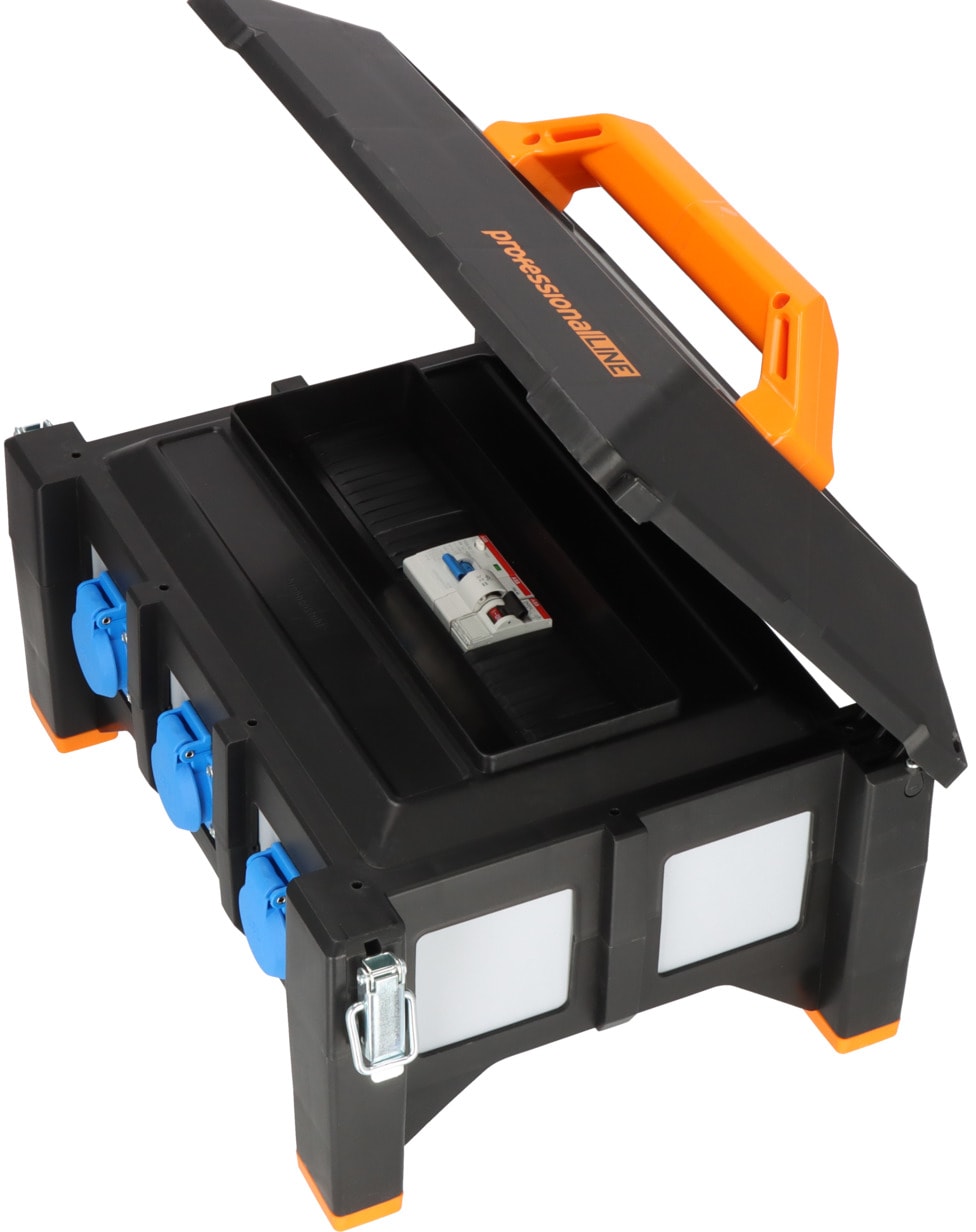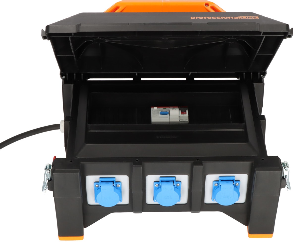 Le coffret de chantier CCM 6M/16/AU de brennenstuhl® Professional, doté de 2m de câble H07RN-F 3G2,5, performe par sa qualité et sa sécurité. Ce coffret électrique est pratique, robuste et adapté à un usage professionnel sur chantier et en atelier - en in
