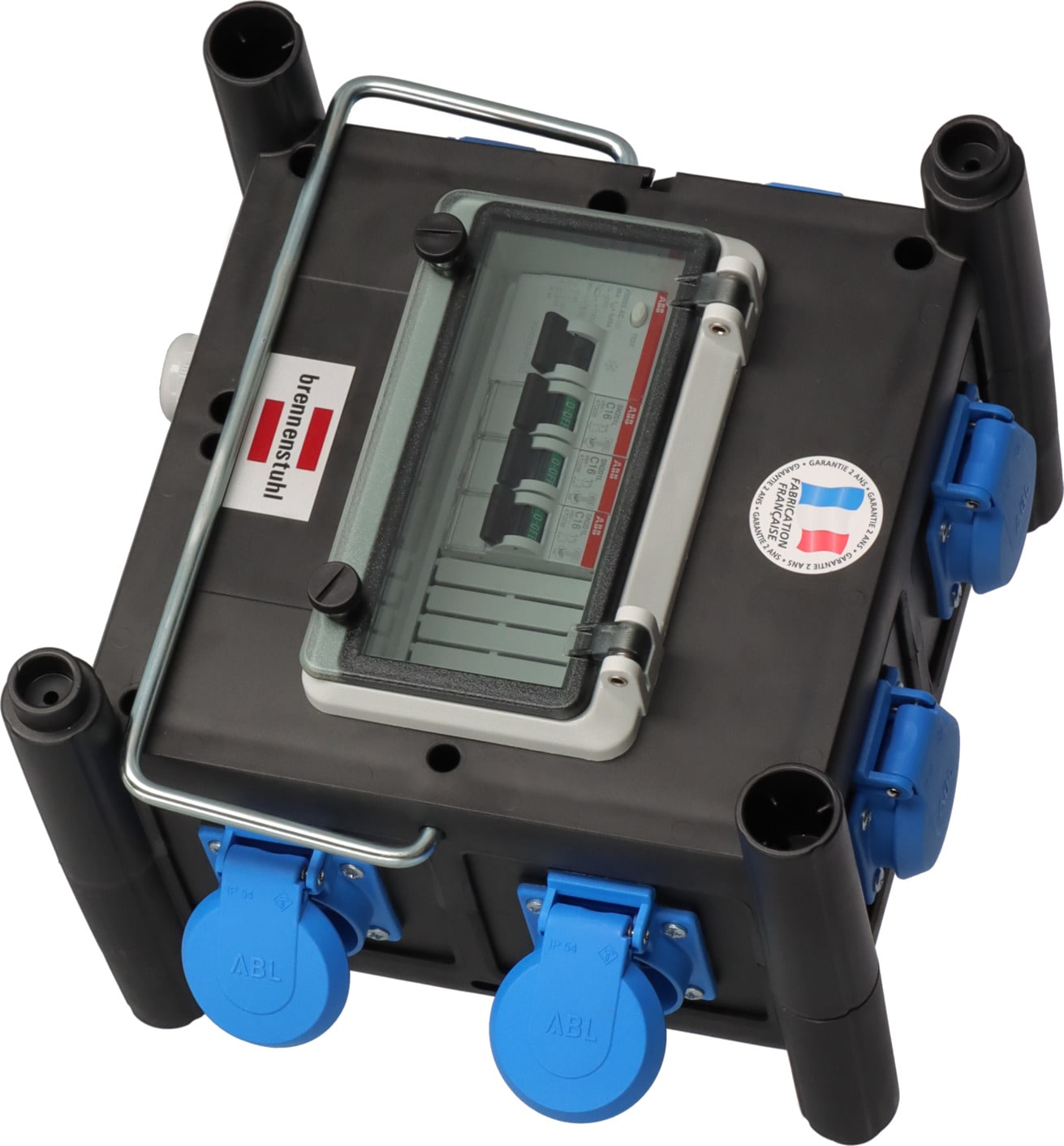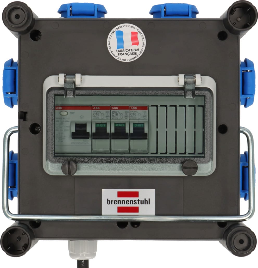 Brennenstuhl Coffret électrique mobile BD 6M/16 / Tableau électrique (6 prises avec clapets, interrupteur différentiel 30mA, disjoncteurs différentiels, poignée, 5m H07RN-F, IP44) fabriqué en France