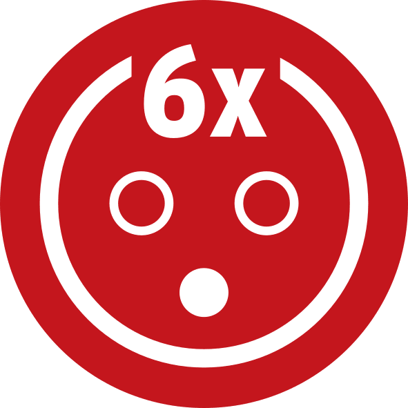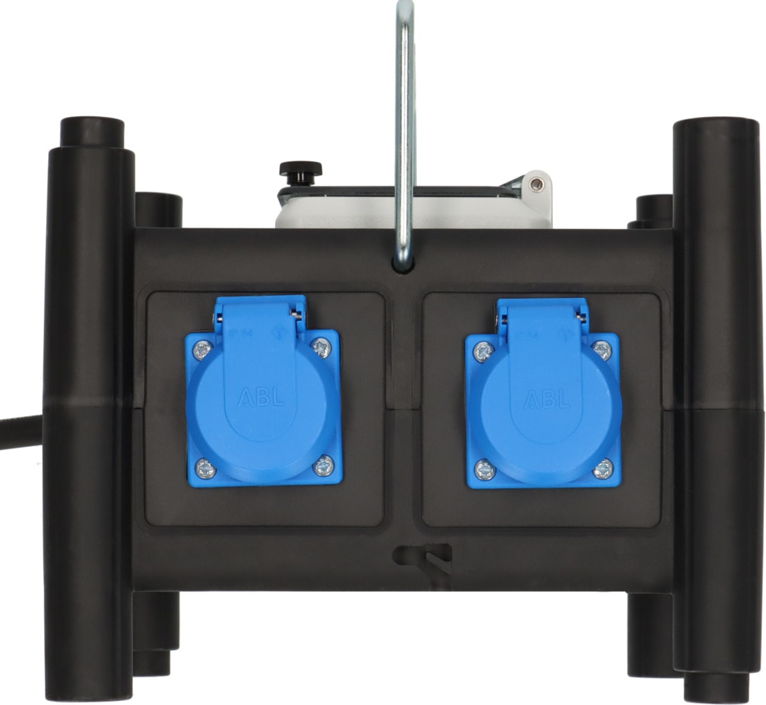 Le coffret électrique mobile BD 6M/16 de brennenstuhl® est équipé d'un boîtier robuste en matière caoutchoutée, d'un interrupteur différentiel 30mA 25A et de trois disjoncteurs différentiels 16/230V~ protégeant la vie humaine des risques d’électrocution.