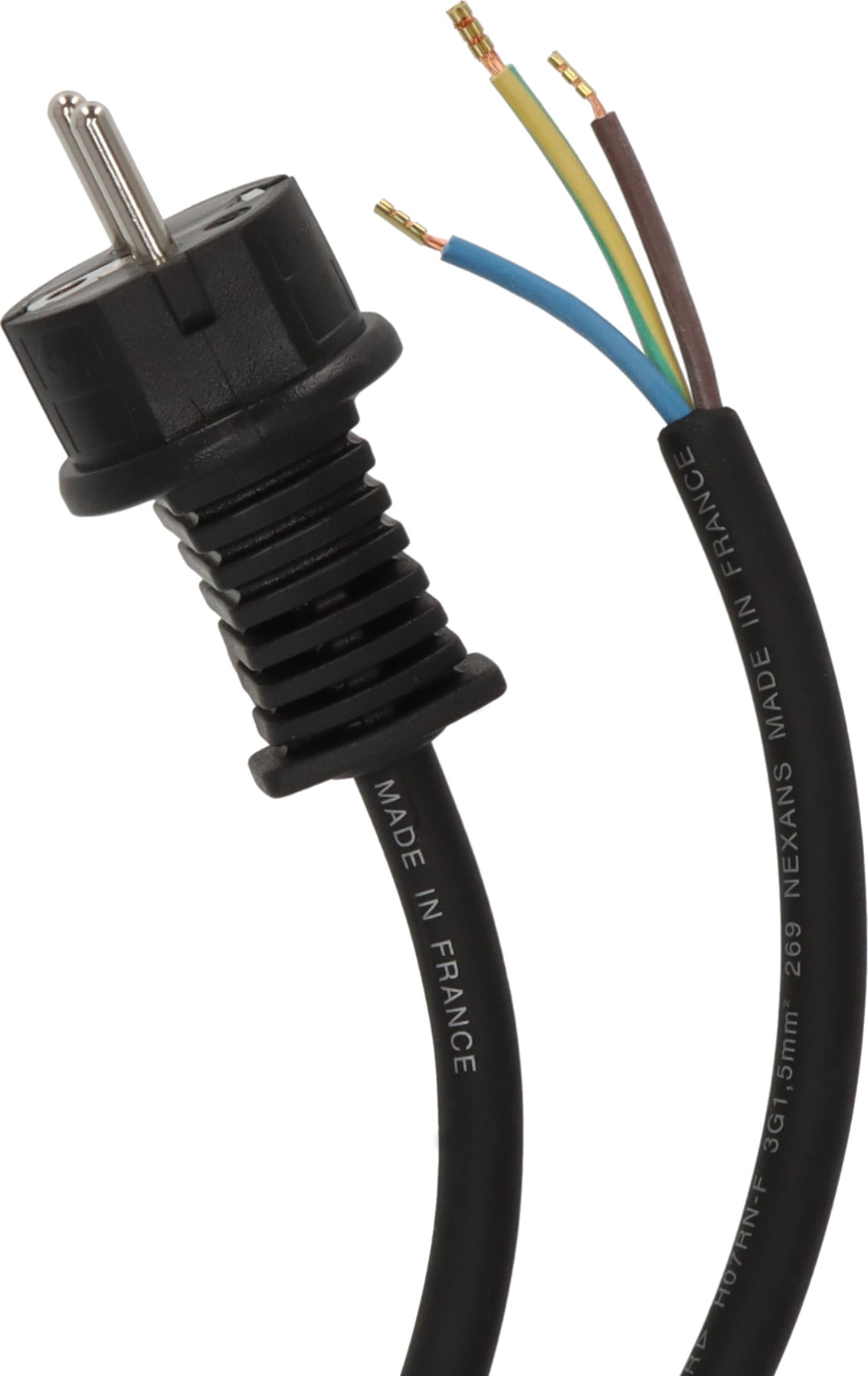 Le cordon d'alimentation de brennenstuhl® est équipé d'une fiche (2P+T 16A/230V~) et de fils dégainés. Ce câble d'alimentation dégainé (une extrémité avec une fiche et l'autre extrémité munie de fils dénudés avec embouts sertis) est adapté à une utilisati