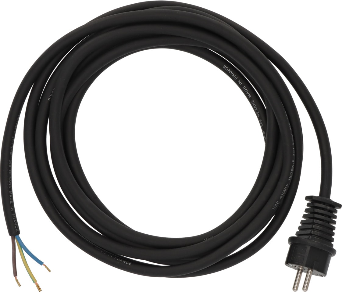 Le cordon d'alimentation de brennenstuhl® est équipé d'une fiche (2P+T 16A/230V~) et de fils dégainés. Ce câble d'alimentation dégainé (une extrémité avec une fiche et l'autre extrémité munie de fils dénudés avec embouts sertis) est adapté à une utilisati