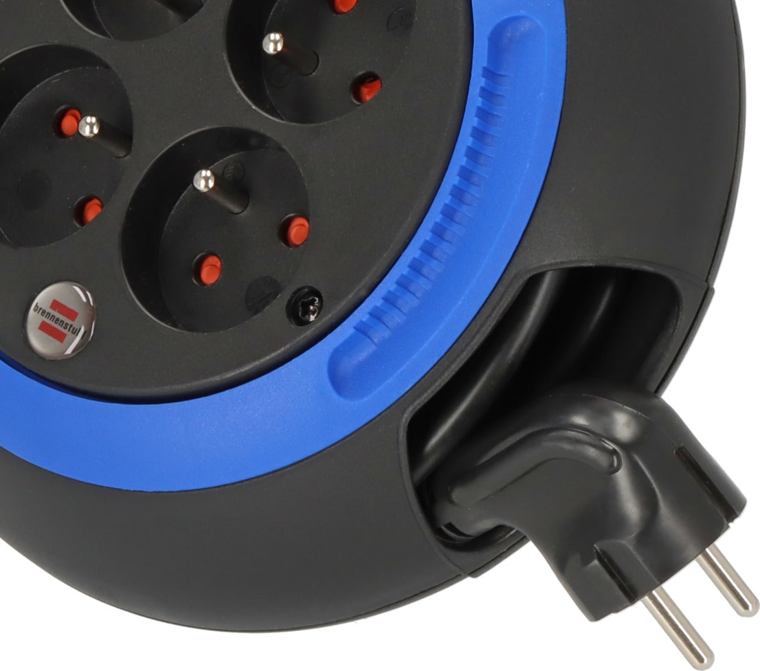 Brennenstuhl Enrouleur de câble Design-box CL-S / Petit enrouleur électrique 4 prises de courant (3m H05VV-F, hauteur 6cm, utilisation en intérieur, fabriqué en France) noir/bleu
