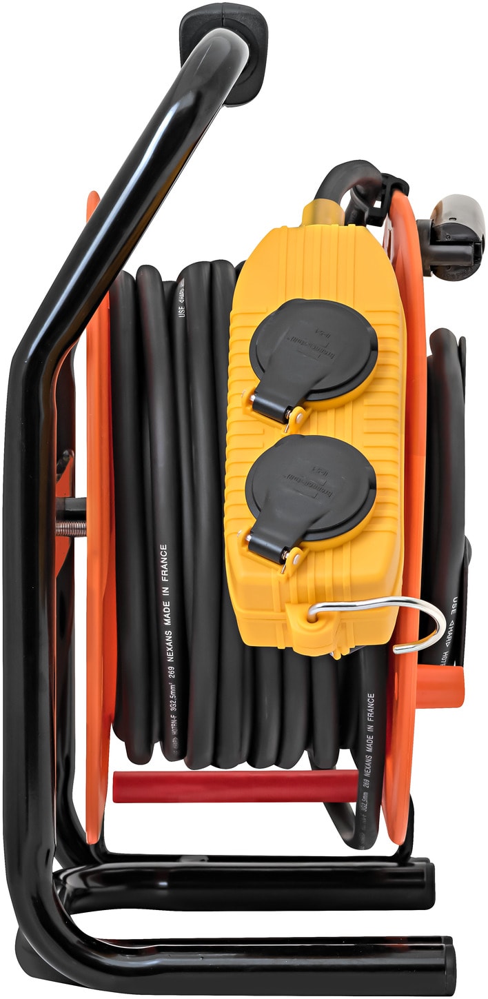 L'enrouleur de câble Garant® BT-RB Bretec® de brennenstuhl® est équipé de 40m de câble H07RN-F composé de 38,5m de cordon d'alimentation et d'une rallonge électrique de 1,5m offrant ainsi une plus grande souplesse de travail. Grâce au bloc mobile Powerblo