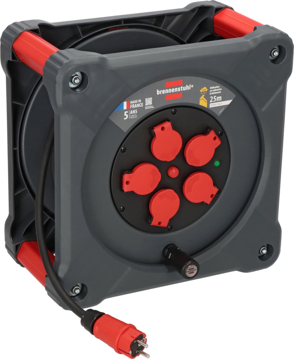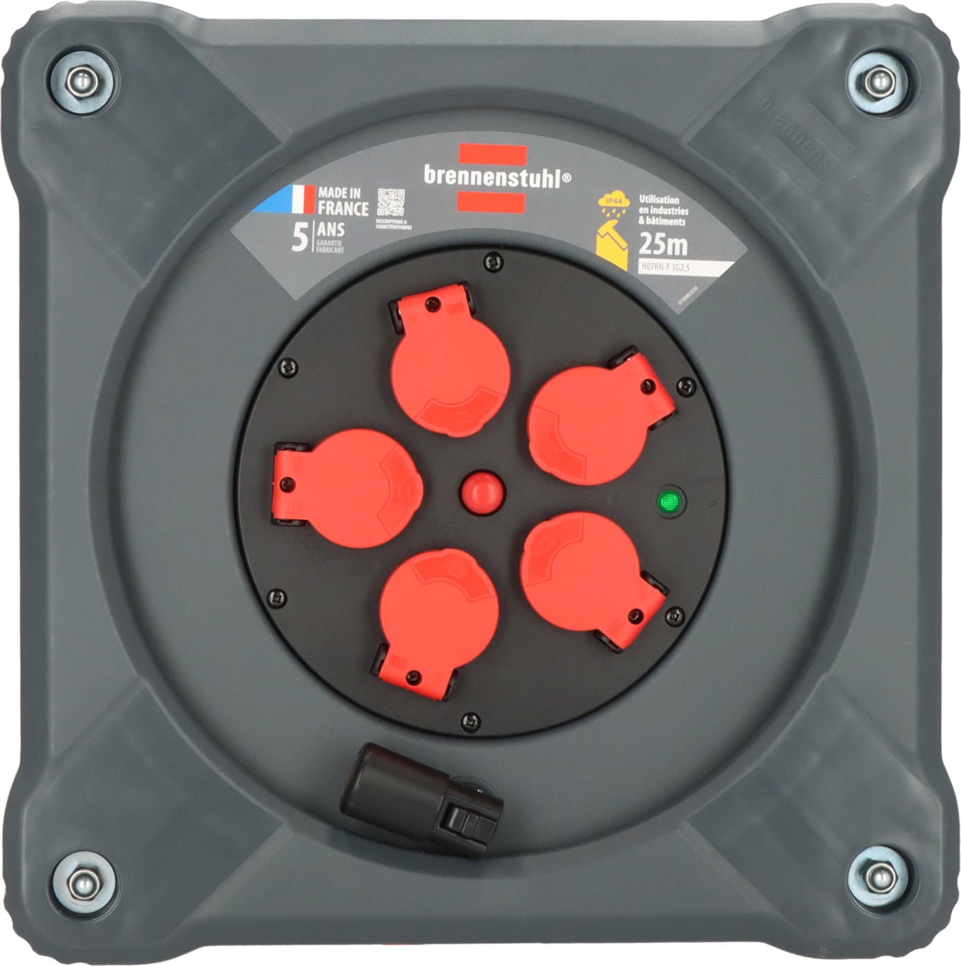 Brennenstuhl Professional Enrouleur de câble KA 2201 5 / Dérouleur électrique (5 prises, 25m H07RN-F 3G2,5, forme cubique, protection anti-retournement, garantie 5ans, fabriqué en France, IP44)