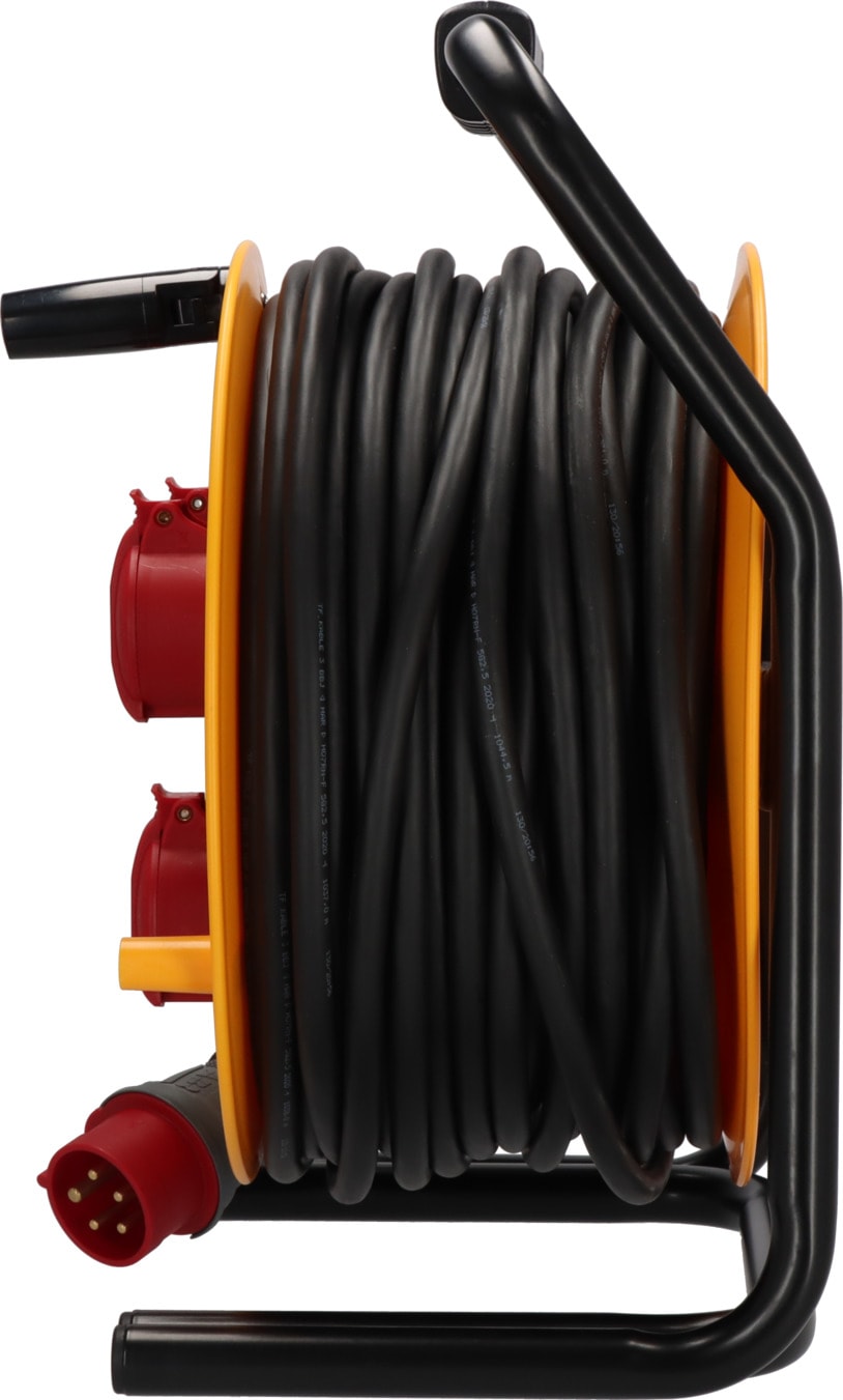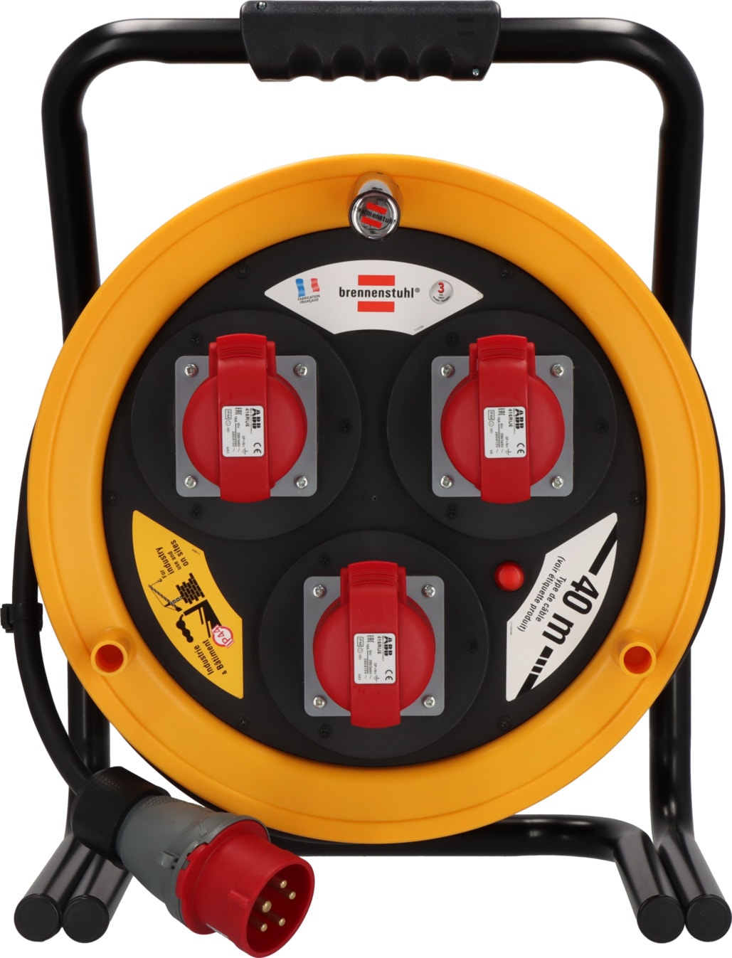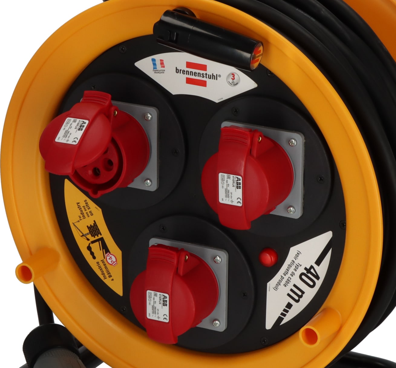 L'enrouleur de câble Maxi Garant CEE/16A/415V de brennenstuhl® est équipé de 40m de câble H07RN-F 5G2,5. D'autre part, ce dérouleur électrique a été développé avec 3 prises CEE 16A/415V avec clapet et une fiche CEE 16A/415V, idéal pour les chantiers, trav