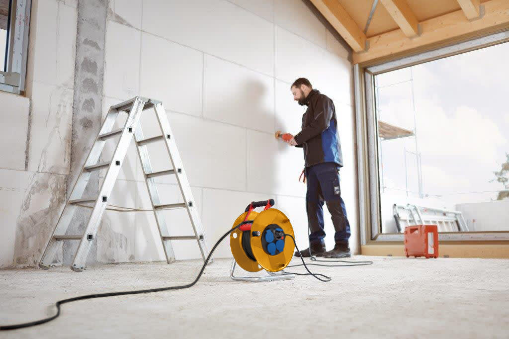 L'enrouleur de câble Standard PRO de brennenstuhl® dispose de 40m de câble H07RN-F, résistant aux hydrocarbures et d'un voyant de présence de tension. La poignée "cablepilot" de ce dérouleur facilite le transport, rend possible l'accroche et guide le câbl