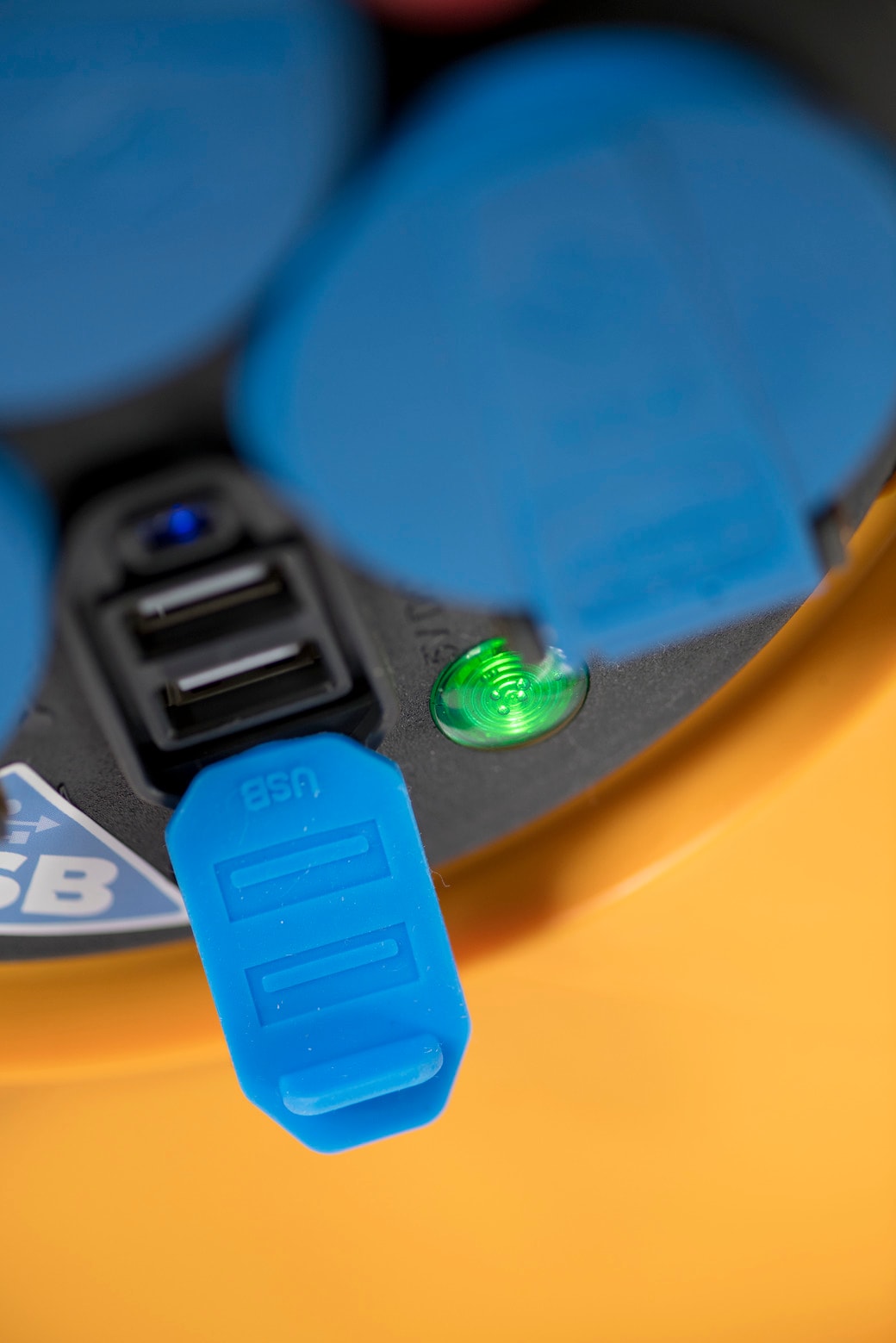 L'enrouleur de câble Standard PRO de brennenstuhl®, 40m H07RN-F, est doté de 3 prises de courant électrique avec clapets et 2 ports USB 5V/2,1A. Le support en acier galvanisé, le tambour en matière plastique résistante, le bouton tournant et la poignée ba