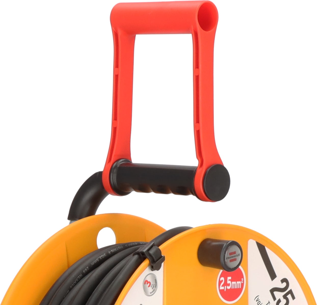 L'enrouleur de câble Standard RB PRO de brennenstuhl® dispose de 25m de câble H07RN-F, résistant aux hydrocarbures et d'un voyant de présence de tension. Ce dérouleur de câble est aussi muni de la technologie Bretec®. Ainsi, pendant la manoeuvre, seul le