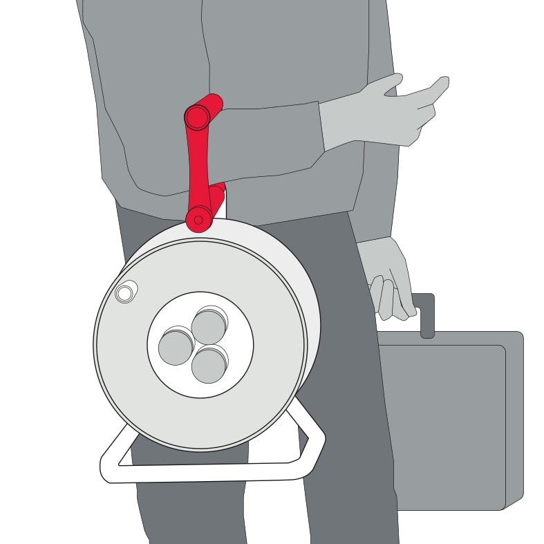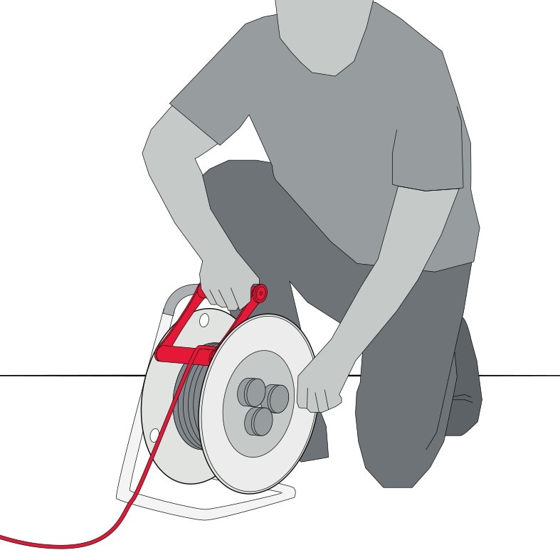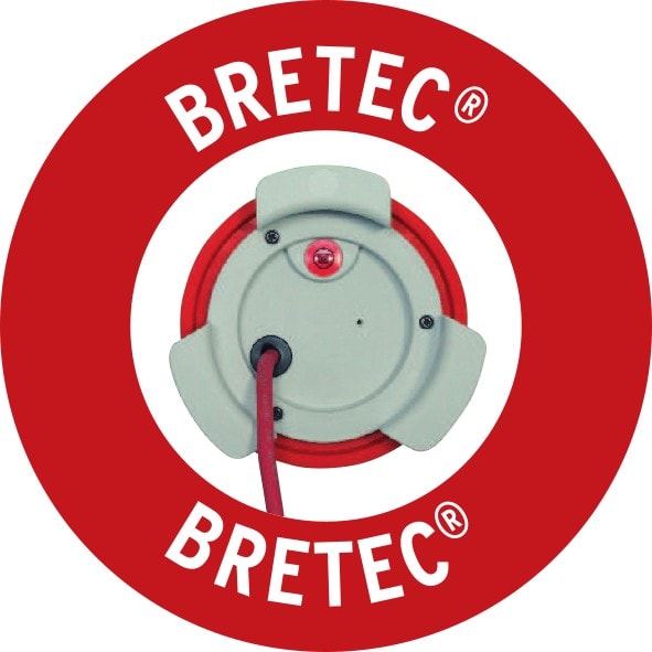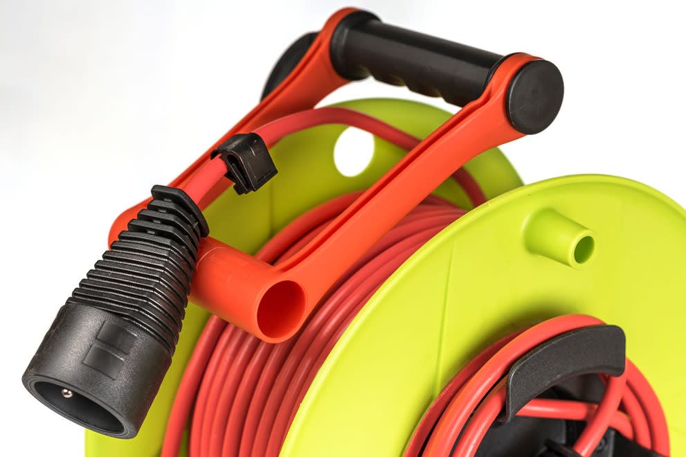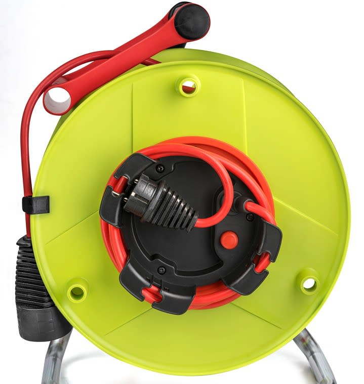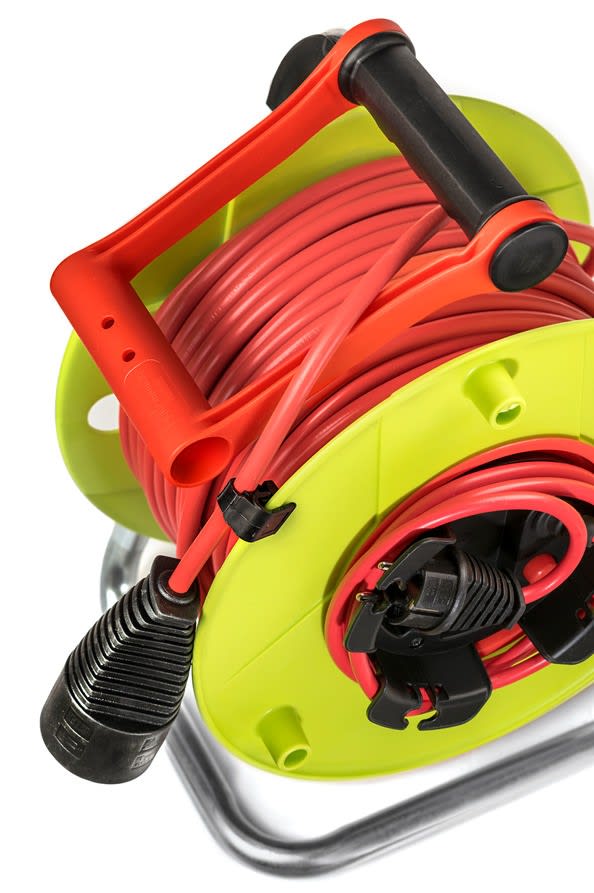 Enrouleur de câble Standard SM1-RB avec rallonge supplémentaire et technologie Bretec® (38,5m+1,5m de câble H05VV-F 3G1,5 rouge, utilisation temporaire en extérieur, fabriqué en France)
