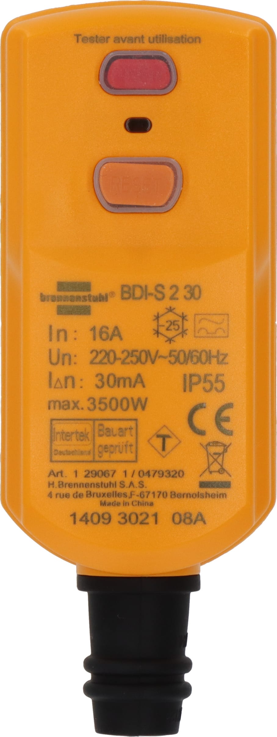 Brennenstuhl Fiche avec protection différentielle 30mA / Fiche à interrupteur différentiel 30mA (protection des personnes contre les accidents électriques, utilisation en extérieur) jaune
