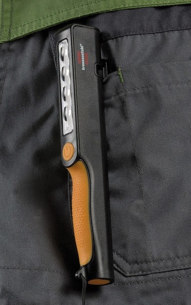 La lampe de poche LED HL DA 41 MC rechargeable de brennenstuhl® en 200+150 lm est équipée d'un clip de fixation aimanté pour une accroche facile sur une poche, une ceinture, … Le chargement de la lampe torche clip s'effectue via un port micro USB. Déco Lampe de poche LED avec clip maniable équipée de 4 LED SMD très performantes et positionnées en façade de biais et 1 LED CREE ultra puissante en frontal Lampe torche LED d'atelier rechargeable via le port micro USB et son câble de raccordement USB fourni - batterie Li-Ion (3,7V/1,6Ah) intégrée Torche avec une autonomie maximale de 3,5h avec une charge pleine Le clip de fixation situé au dos de la lampe de travail est aimanté et orientable jusqu'à 90° Grâce à son format stylo, cette lampe d'inspection peut facilement être rangée