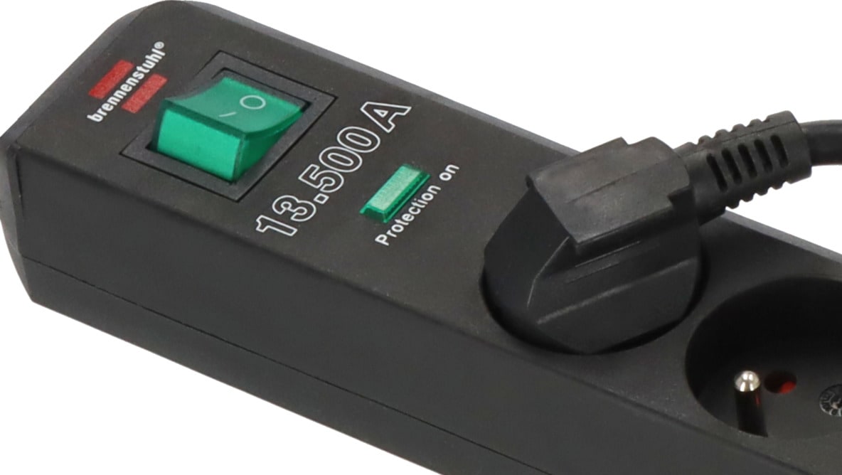 La multiprise Eco-Line de brennenstuhl® est équipée d'un parasurtenseur parafoudre qui protège vos appareils branchés jusqu'à 13500A (voyant de protection active). De plus, ce bloc multiprises est muni d'un interrupteur et d'une orientation à 45 degrés de
