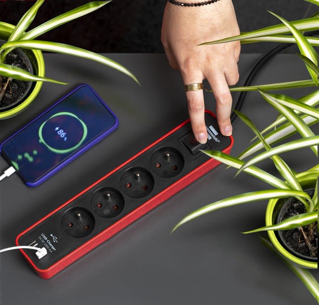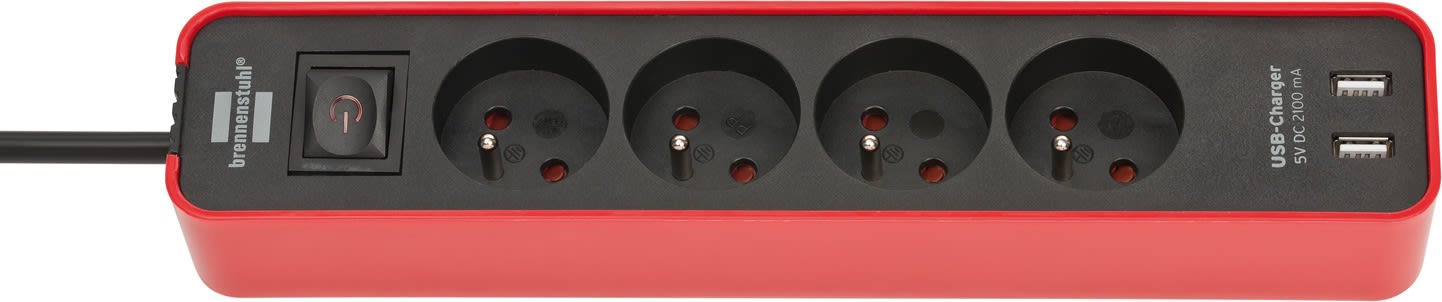 Brennenstuhl - Multiprise Ecolor 4 prises avec interrupteur et 2 ports USB, rouge/noire, 1,5m H - 1153241076