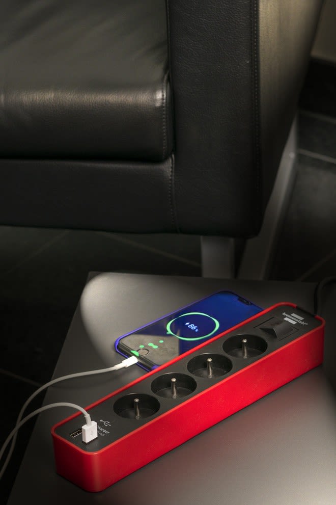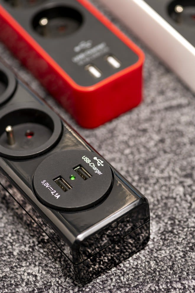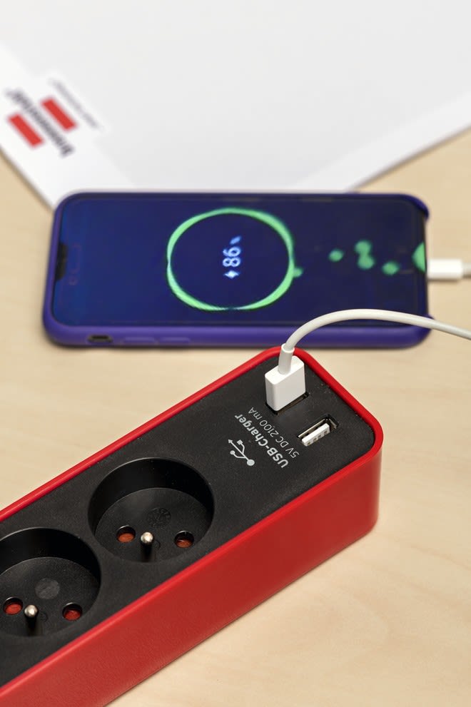 La multiprise Ecolor ECL USB 04 FR 3676 de brennenstuhl® dispose d'un design élégant, intemporel et d'une surface polie pour un visuel attrayant. Ce bloc prises est équipé de 2 prises-chargeur USB (5V DC 2,1A) et de 1,5m de câble H05VV-F. La prise mult Multiprise avec interrupteur au design élégant, élancé, intemporel et haut-de-gamme - surface polie pour un visuel attrayant Prise multiple avec 4 prises de courant 2P+T 16A/230V et 2 prises-chargeurs USB 5V DC 2,1A - très pratique et robuste - répond à l'utilisation de vos besoins au quotidien Rallonge multiprise équipée de prises de courant orientées à 45° pour un branchement optimal de plusieurs fiches coudées, … Bloc multiprises avec interrupteur muni d'un voyant lumineux - économiser de l'énergie en coupant le réseau électrique Bloc prises adapté à une utilisation en intérieur - connexion de tout type d'appareils électriques, luminaires, smartphone, ... dans le respect de la puissance préconisée