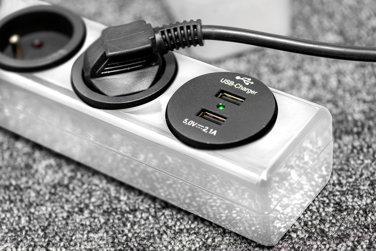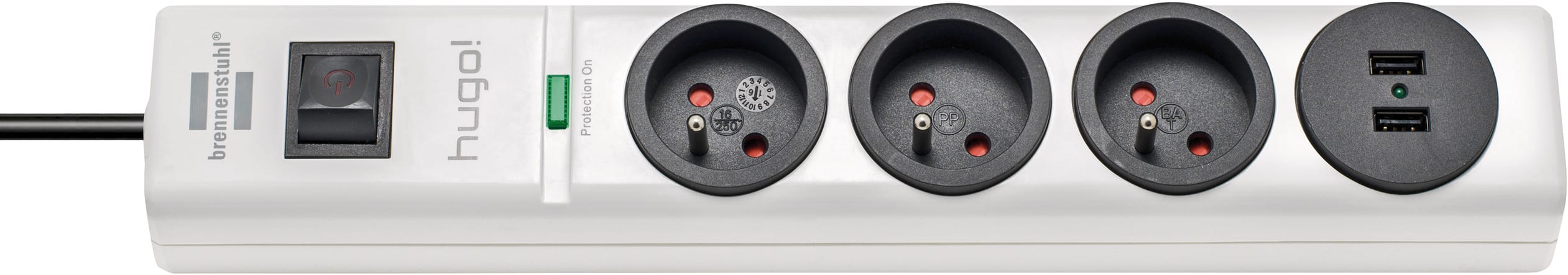 Brennenstuhl - Multiprise hugo! blanche avec parasurtenseur 19500A, 3 prises + 2 ports USB 2m H - 1150611523