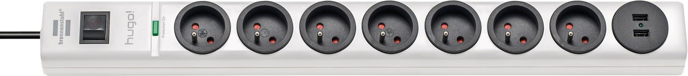 Brennenstuhl - Multiprise hugo! blanche avec parasurtenseur 19500A, 7 prises + 2 ports USB 2m H - 1150611527