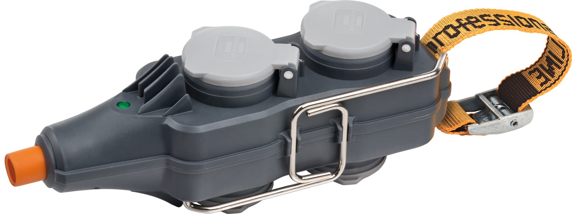Le bloc prises mobile professionalLINE Powerblock de brennenstuhl® dispose de 4 prises de courant orientées à 45° et protégées contre la poussière et les projections d'eau. Le bloc prises sans câble est équipé d'un voyant de présence de tension qui évite