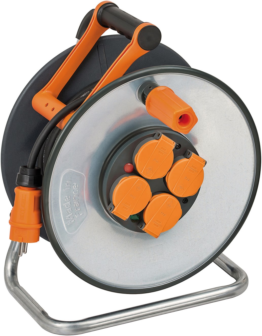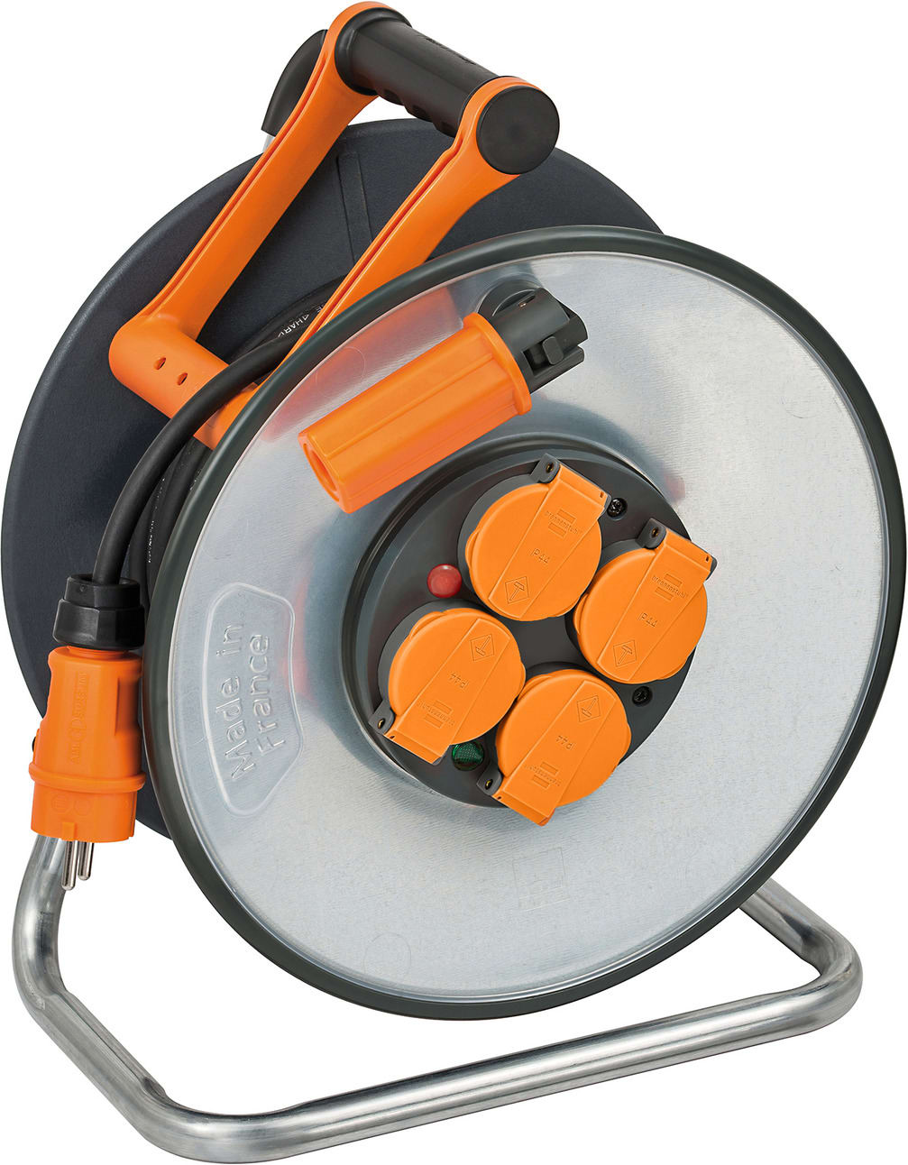 Brennenstuhl professionalLINE Enrouleur de câble Steelcore avec 4 prises de courant (25m de câble H07RN-F 3G2,5, flasques en acier galvanisé isolées, en extérieur, garantie 5 ans, fabriqué en France)