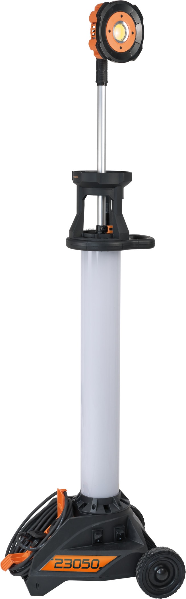 Brennenstuhl professionalLINE Projecteur LED TU 23051 M FR 360° / Projecteur de chantier LED 23700lm avec spot télescopique 3200lm (2 prises de courant, câble 5m, 2 roues avec pédale de frein, IP54)