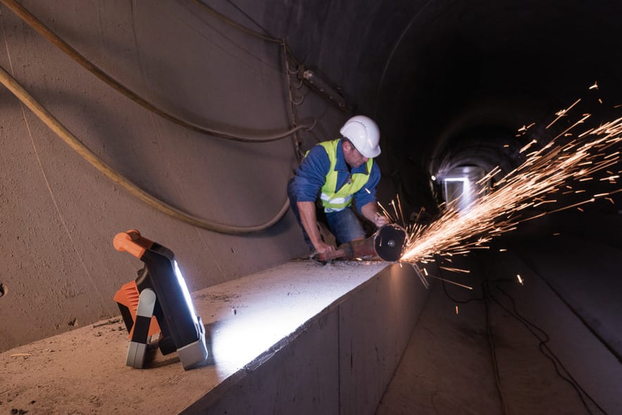 Le projecteur LED portable professionalLINE LB 3000 de brennenstuhl® extrêmement robuste est conçu pour fonctionner avec des batteries Li-Ion de la série AB 1805, ainsi qu'avec des batteries Li-Ion 18V de la gamme Bosch Professional (batterie non fournie)