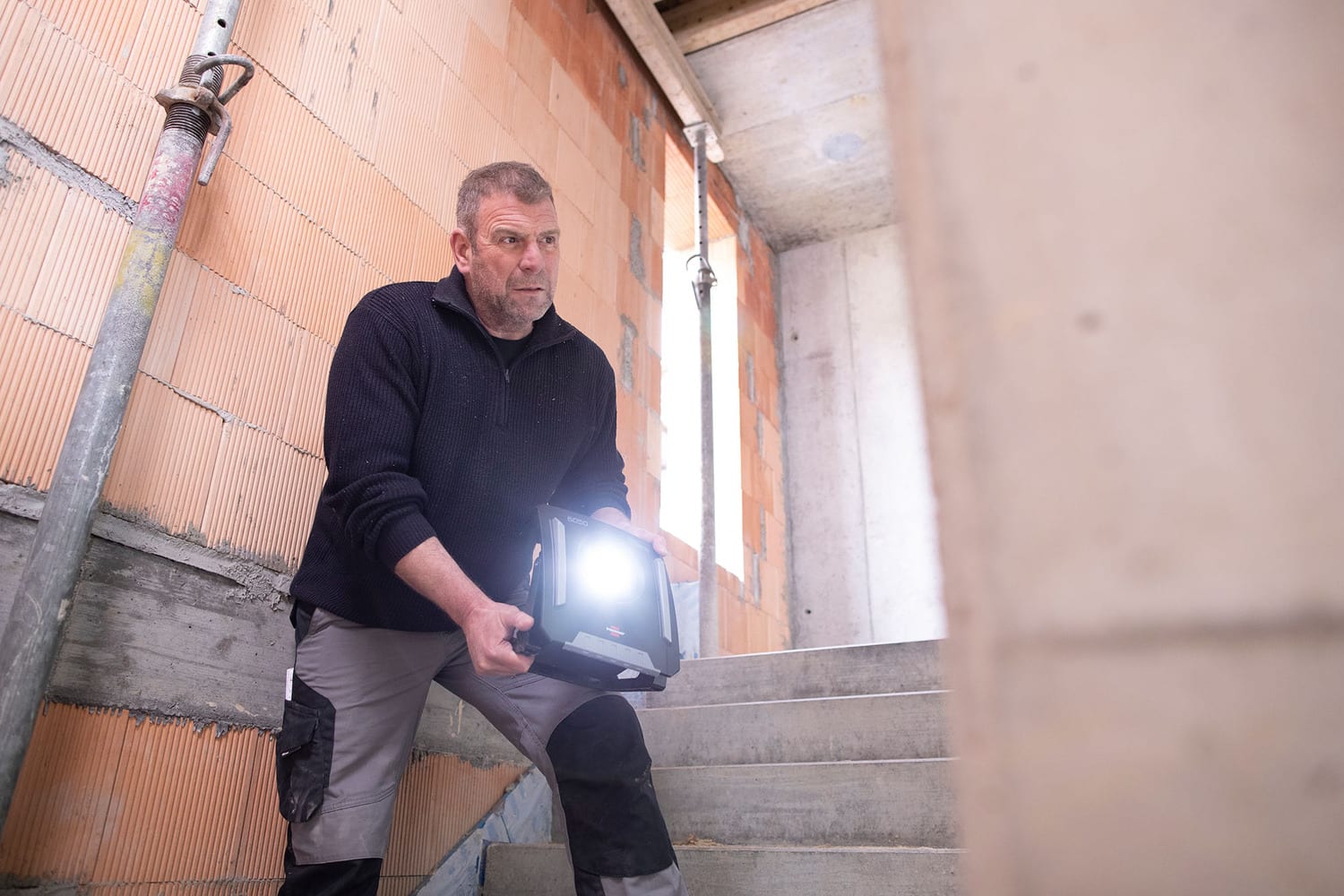Le projecteur LED Multi Battery 6050 MH hybride de brennenstuhl® Professional, extrêmement robuste et puissant est destiné à une utilisation professionnelle et assure une mobilité maximale au travail grâce au Multi Battery 18V System de brennenstuhl®. Le