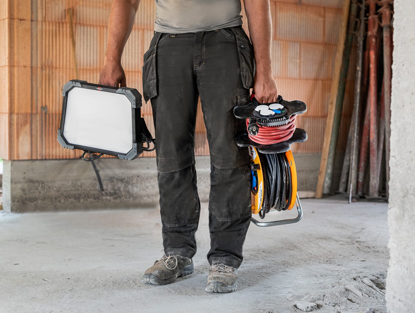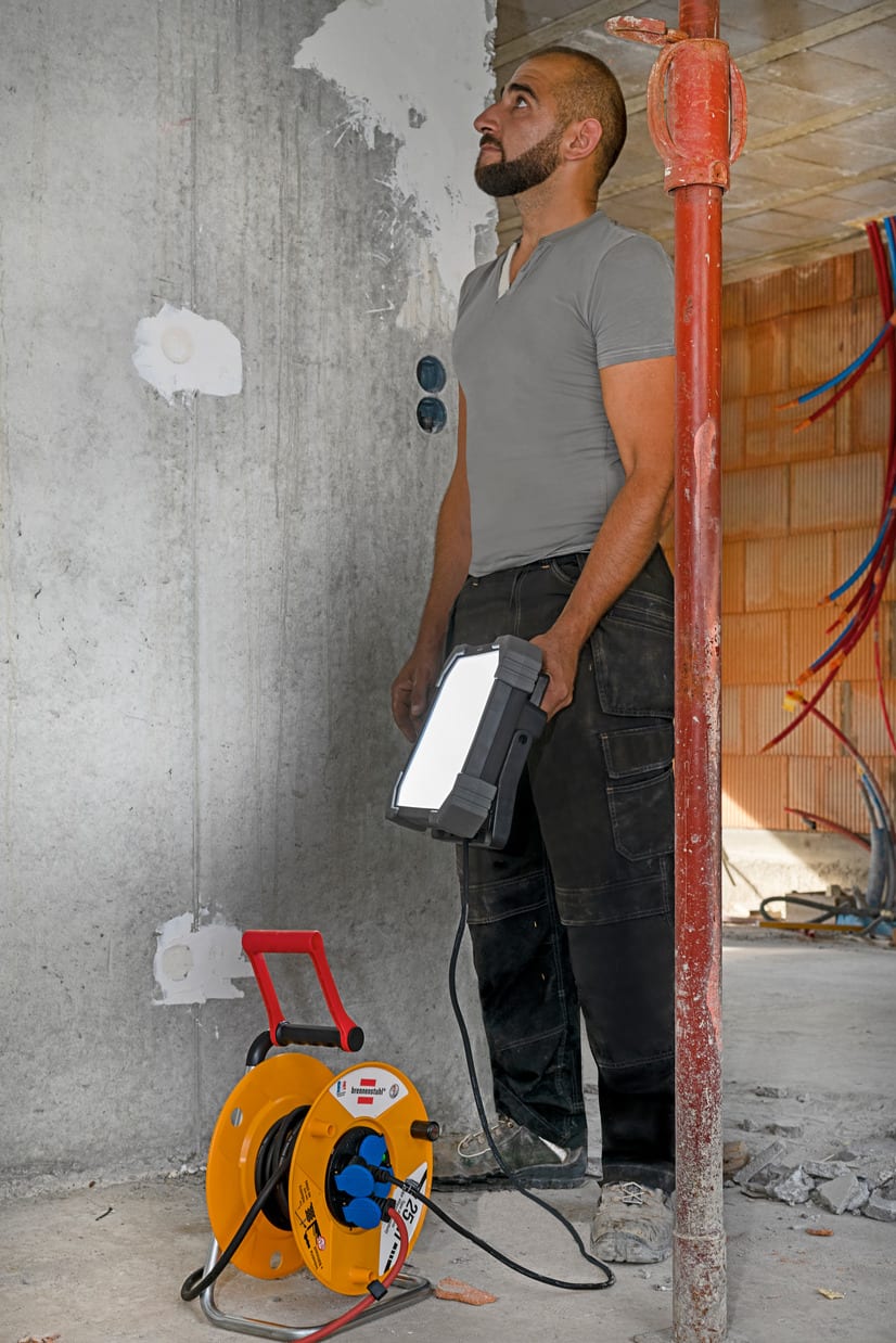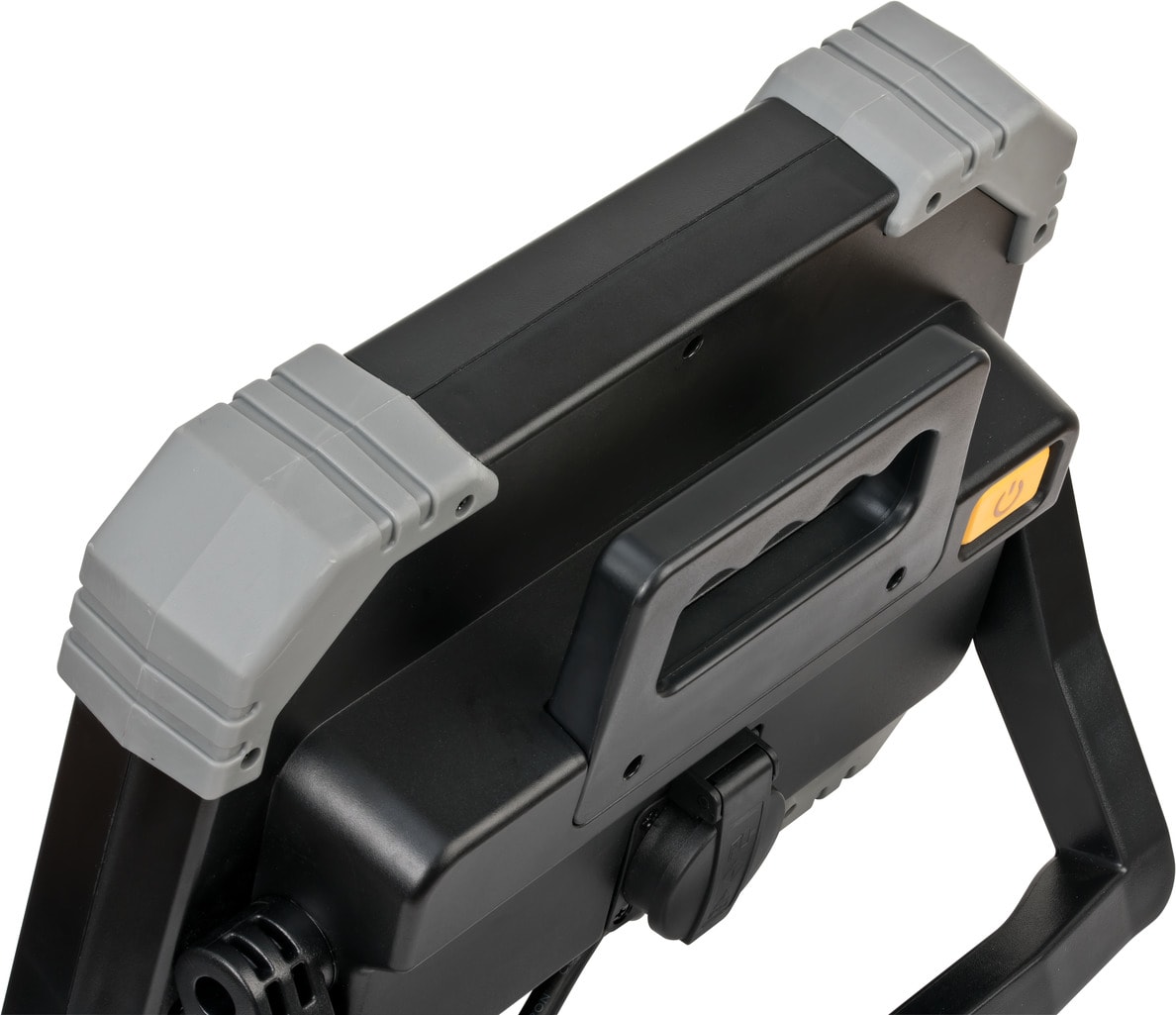Le projecteur de chantier LED DINORA 10051 FR portable de brennenstuhl® est un projecteur LED portable équipé d'un boîtier en plastique résistant aux chocs et d'une protection renforcée des angles. Le projecteur de chantier LED est adapté à une utilisatio