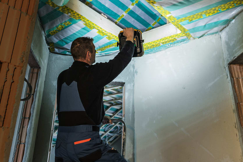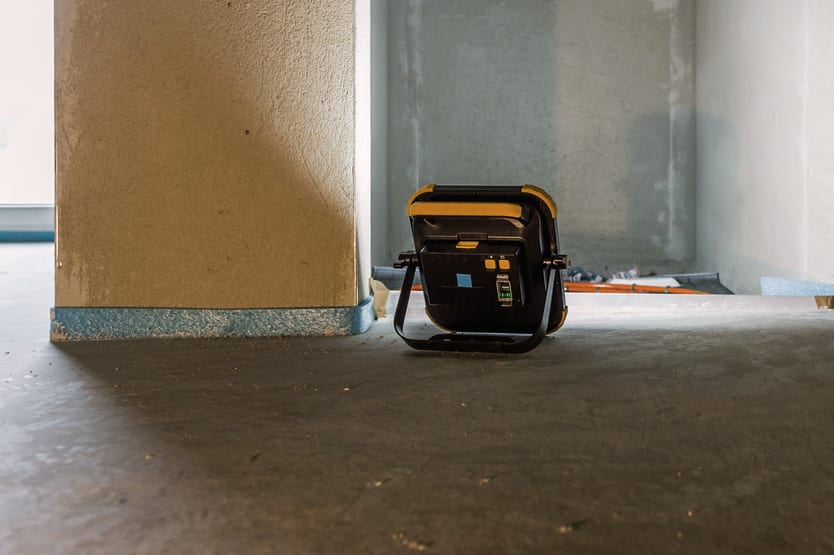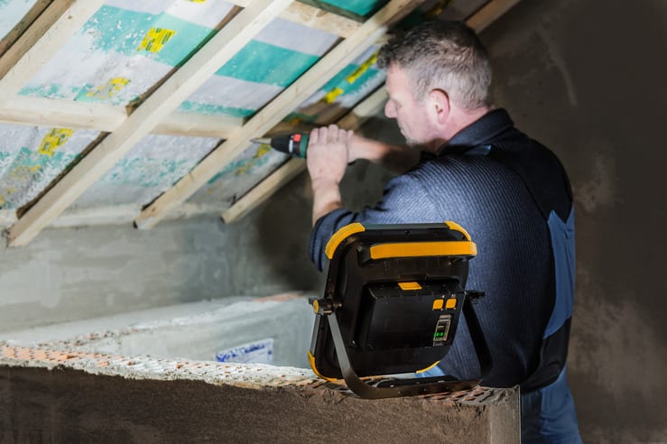 Projecteur de chantier mobile et lumineux à LED avec batterie rechargeable offrant une lumière de travail intense - Haut-parleur Bluetooth supplémentaire 2x 3W