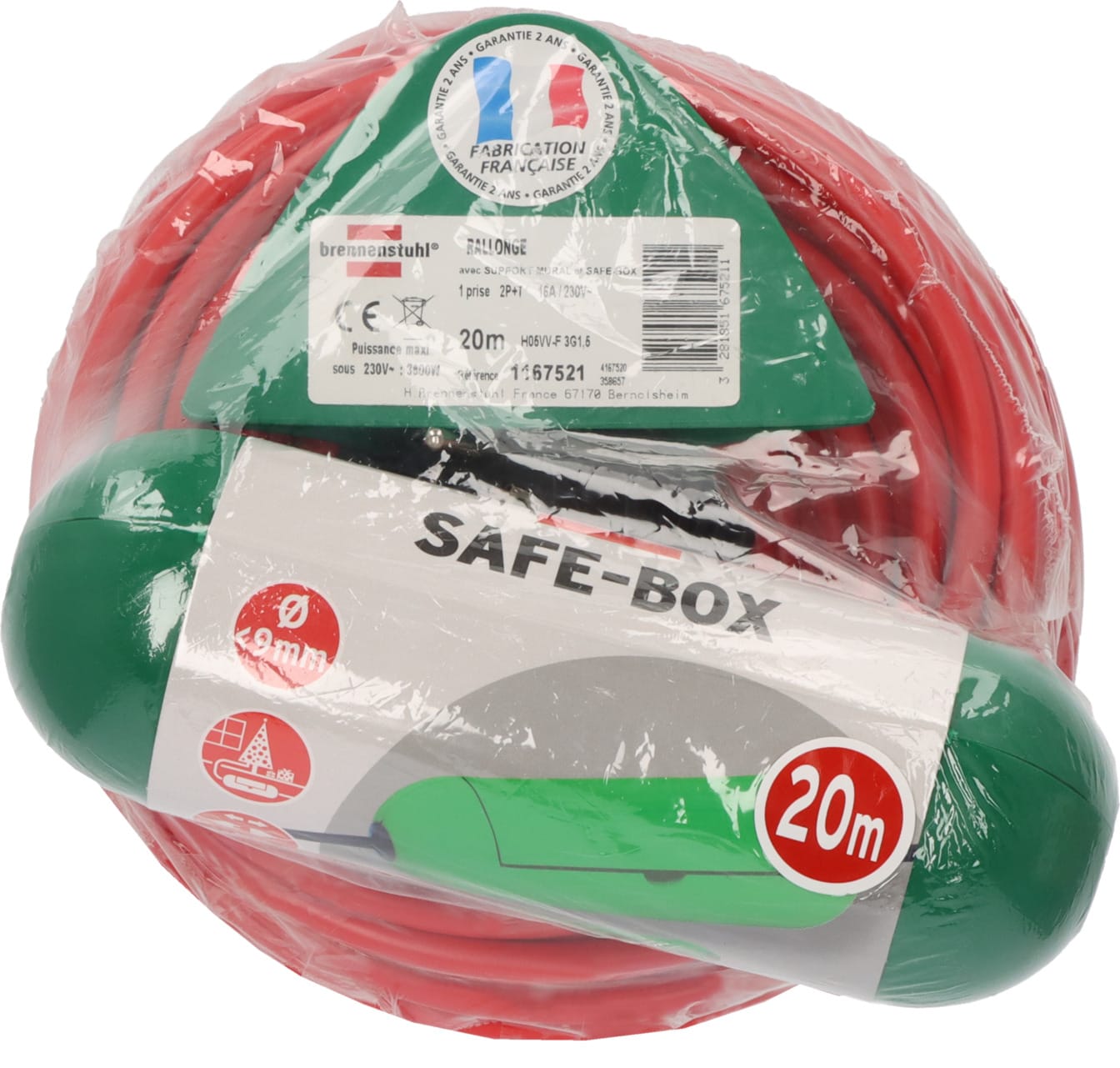 Brennenstuhl Rallonge électrique / Prolongateur électrique avec boîtier de protection et support (20m H05VV-F 3G1,5, boîtier de sécurité pour connexion, rangement mural), fabriquée en France