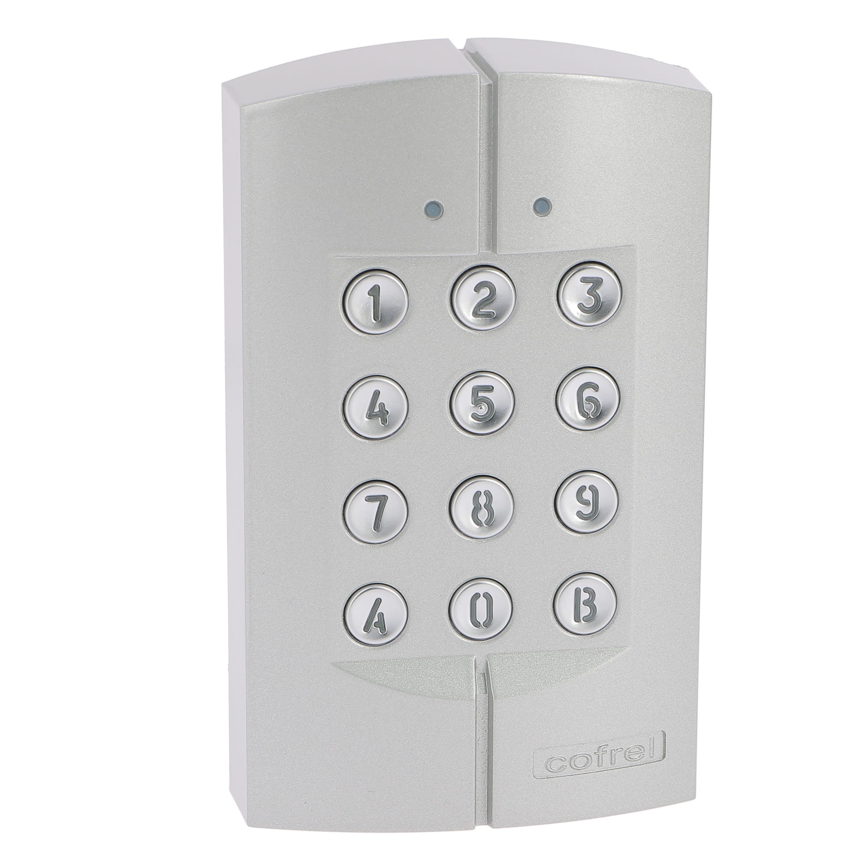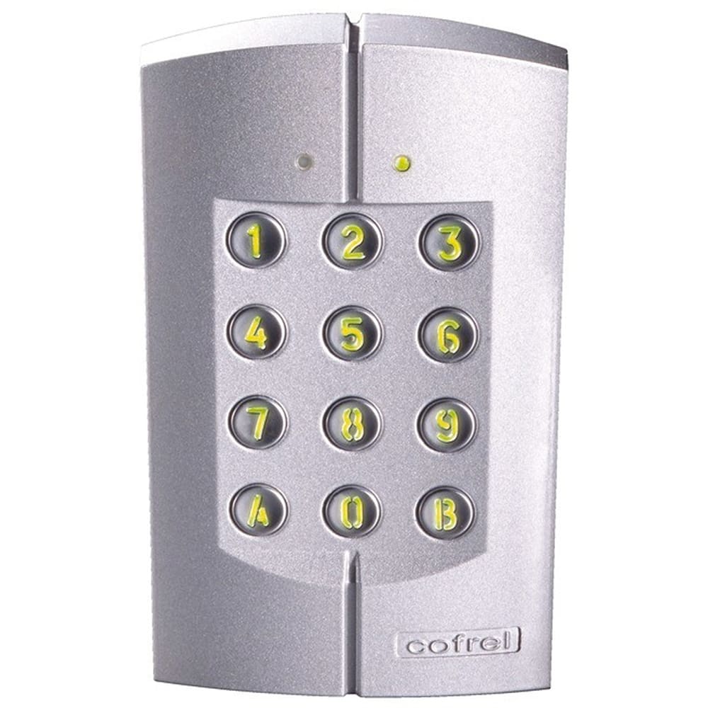 Clavier codé Tercode 1060 boîtier monobloc en Zamac (métal injecté) et touches métalliques rétro-éclairées - Finition Argent - 2 relais NO-NF (100 codes) Touche 0 pouvant commander une gâche en ouverture libre (à associer à une horloge) - Mémoire permanente permettant la sauvegarde des données - 2 LEDs de signalisation en face avant (rouge : mode programmation - verte : ouverture de porte) Sorties : monostable ou bistable par contact NO-NF - Pouvoir de coupure du contact NO-NF : 5A - 24V Alimentation : 12V= à 30V= ou 12V~ à 30V~ - Consommation :- en veille : 10mA - maximum : 60mA en courant continu- maximum : 115mA en courant alternatif Dimensions : 140x85x28mm