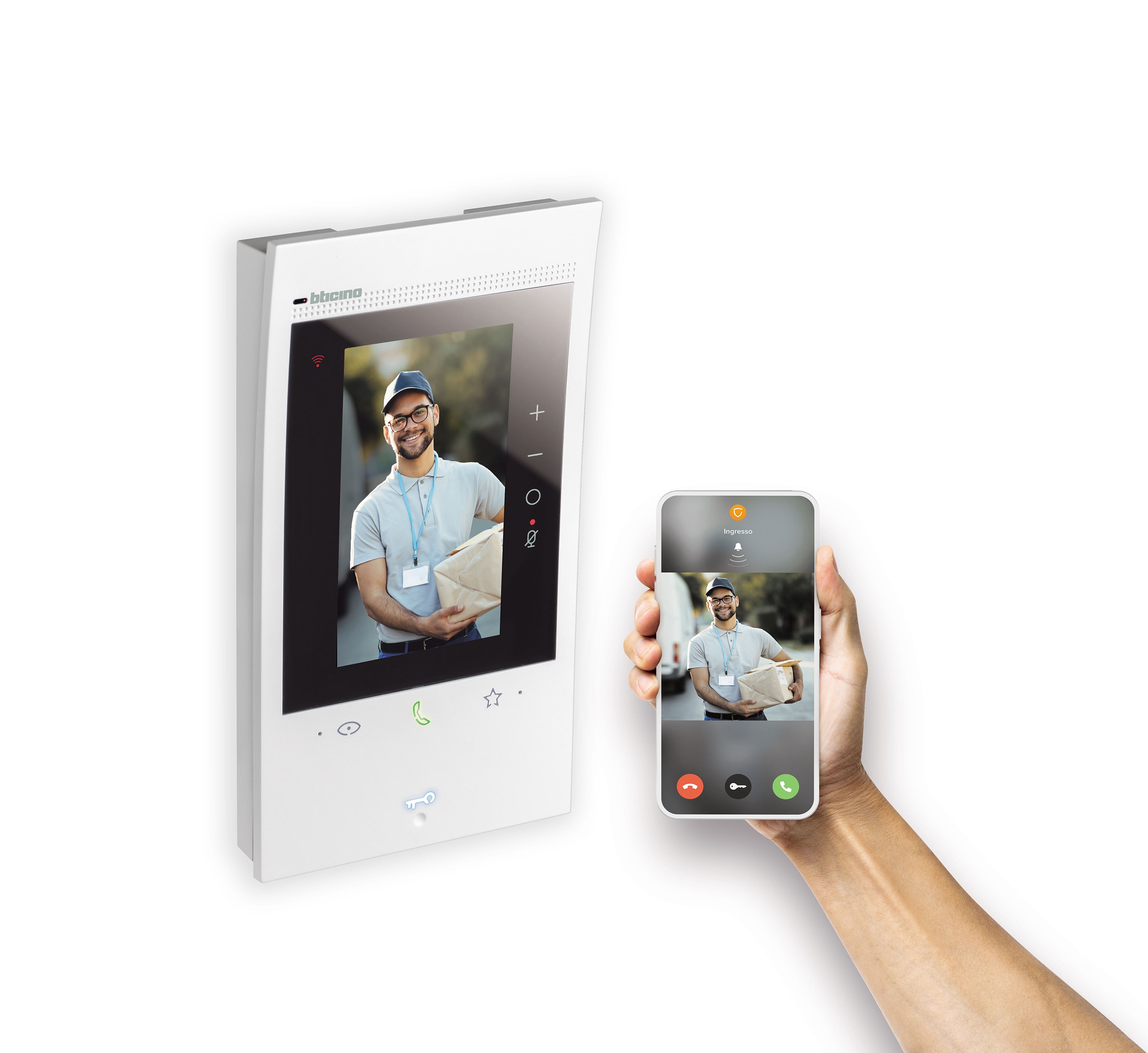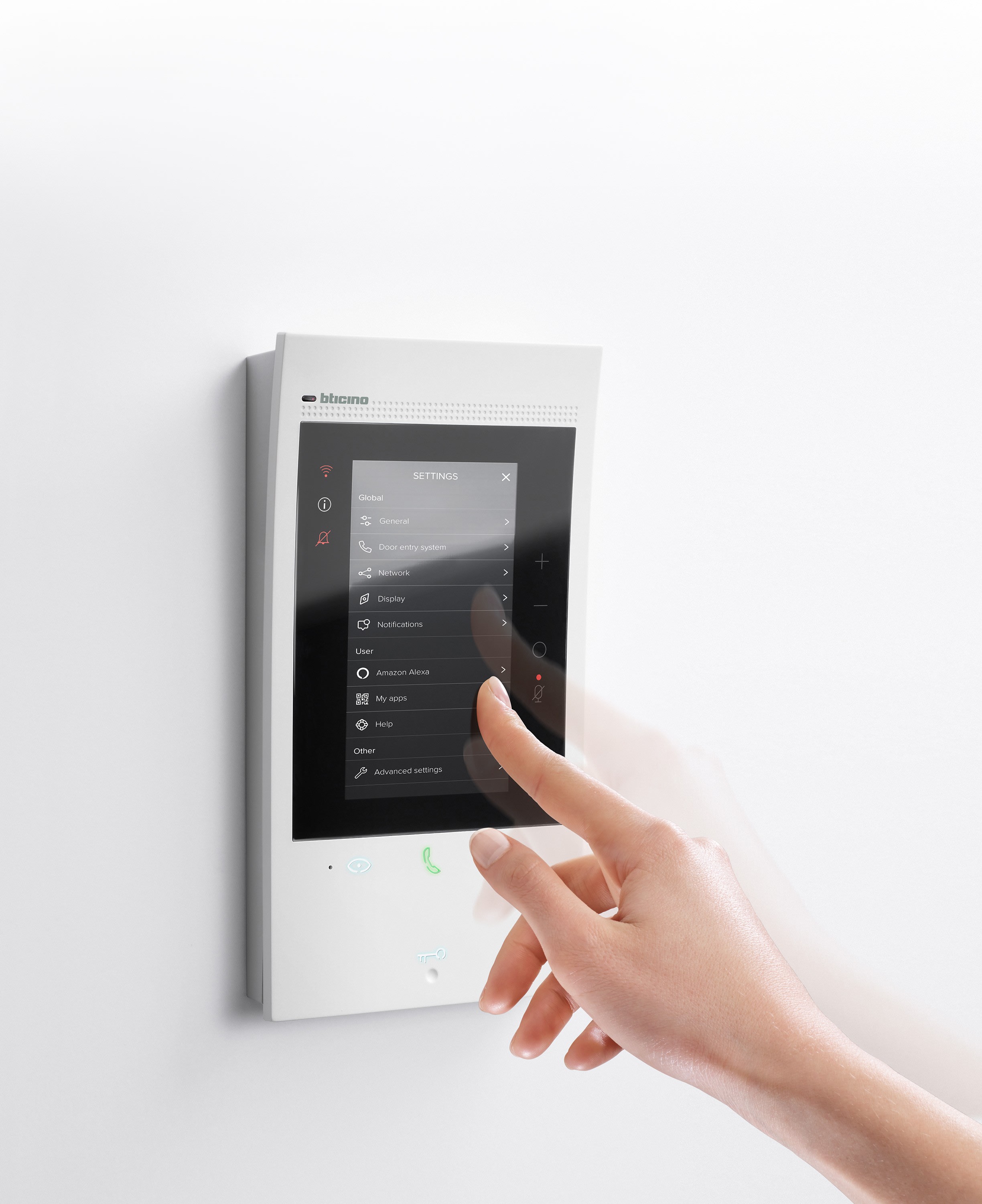 Kit composé de : - 1 platine de rue Linéa 3000 noire réf. BT343093- 1 poste intérieur Classe 300EOS with Netatmo blanc réf. BT344845- 6 badges de proximité et 2 puces pour contrôle d'accès- 1 relais d'ouverture de porte réf. 346250- 1 alimentation Bus 2 fils réf. 346050 Contrôlable : - en local- par la voix avec assistant vocal Amazon Alexa intégré permettant d’activer les fonctions du portier vidéo et toutes les fonctions Alexa- à distance via les App. Home + Security et Home + Control (iOS dernière version requis pour iPhone Version récente d’Android avec accès à Google Play recommandée) Ecran tactile LCD 5" vertical finition blanche Fonctionnalités évoluées : - système de recentrage de l’image pour une meilleure visualisation du visiteur - fonction répondeur vidéo (mémoire d’image) - équipé d’une boucle inductive compatible avec les prothèses auditives en position T - touches d’ouverture de gâche - touches capacitives pour principales fonctions : décrocher/raccrocher, activation caméra platine de rue et activation autres caméras, et touche Favoris - témoins LED de notifications Permet également de piloter les fonctions MyHOME via l’App.Home + Control