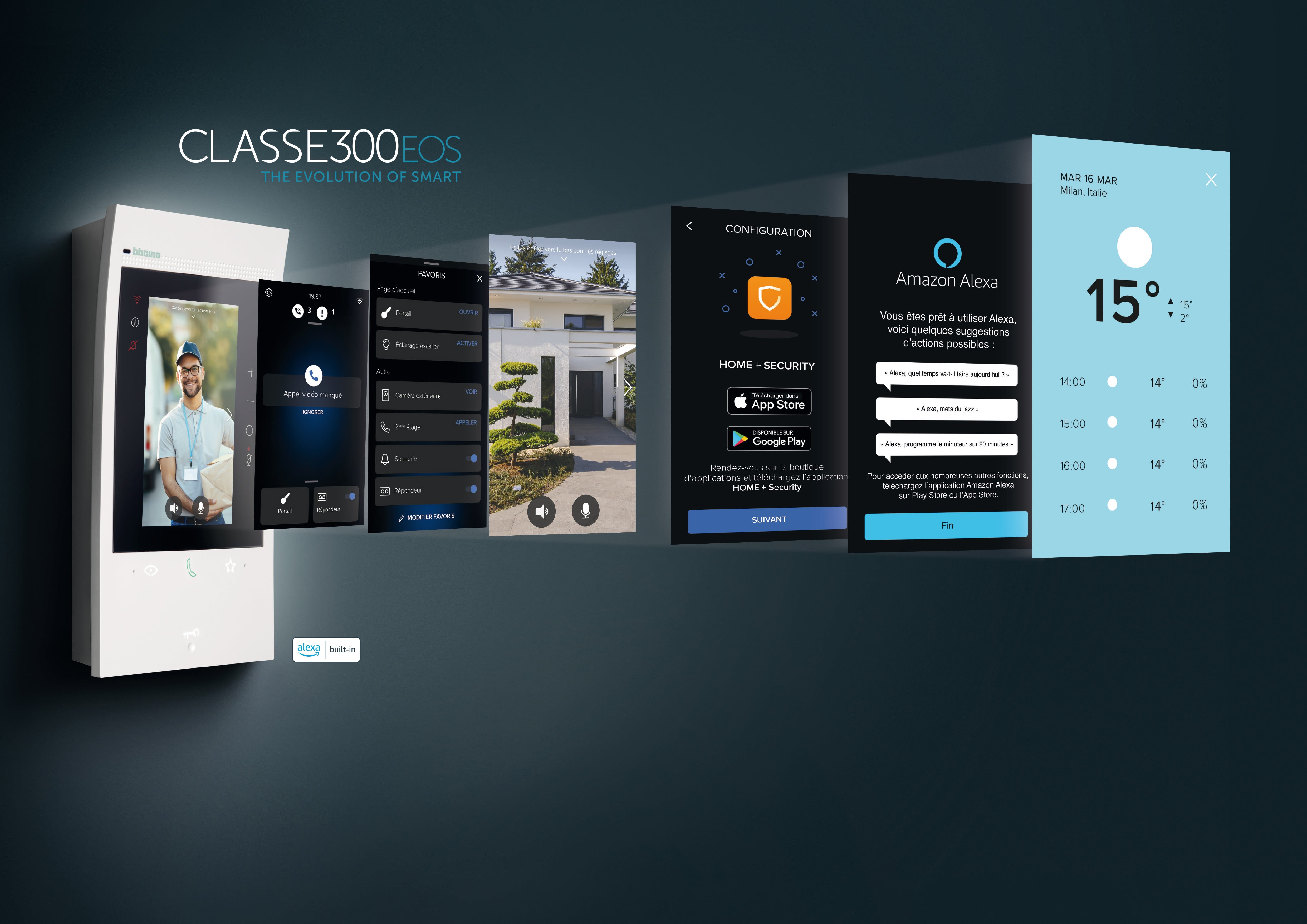 L'offre de portier Classe 300EOS with Netatmo vous permet d'entrer dans l'univers Logement connecté du Groupe Legrand. Point central de la maison, le portier vidéo connecté Classe 300EOS with Netatmo vous permet de piloter toutes les solutions de sécurité Netatmo. Le portier Classe 300EOS with Netatmo est le premier portier vidéo connecté qui intègre la commande vocale Alexa permettant de piloter les fonctions d'interphonie par la voix ainsi que toutes les fonctions Alexa.