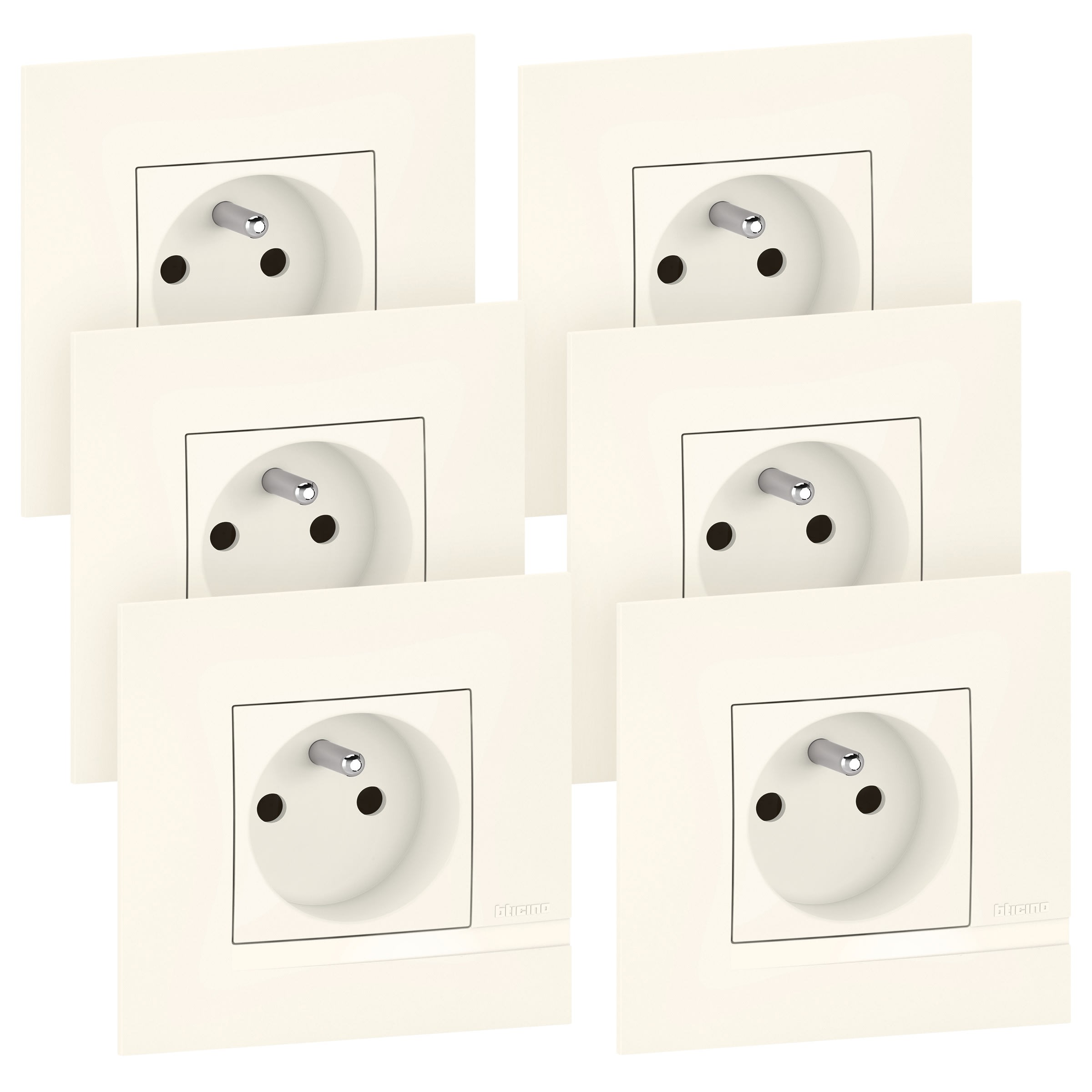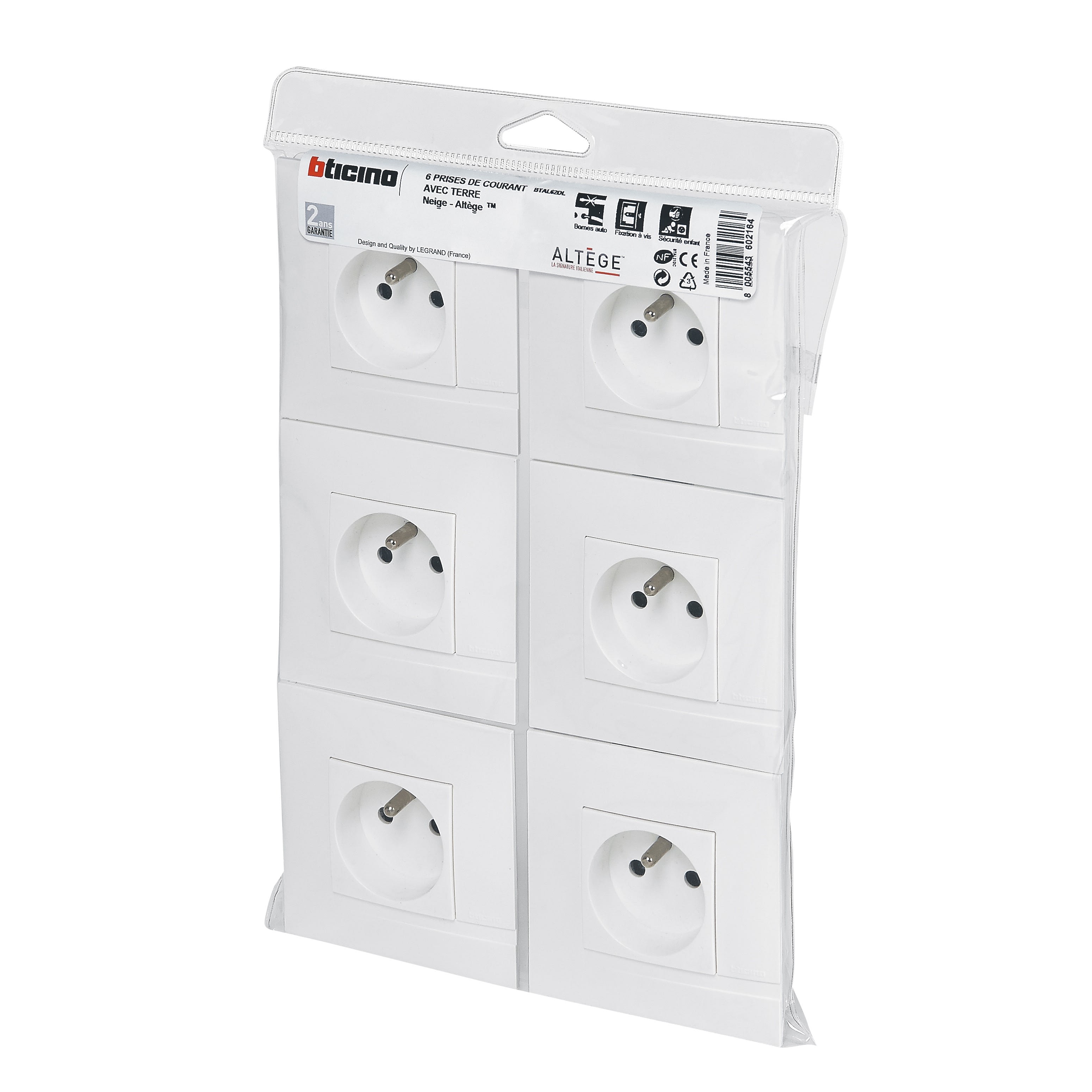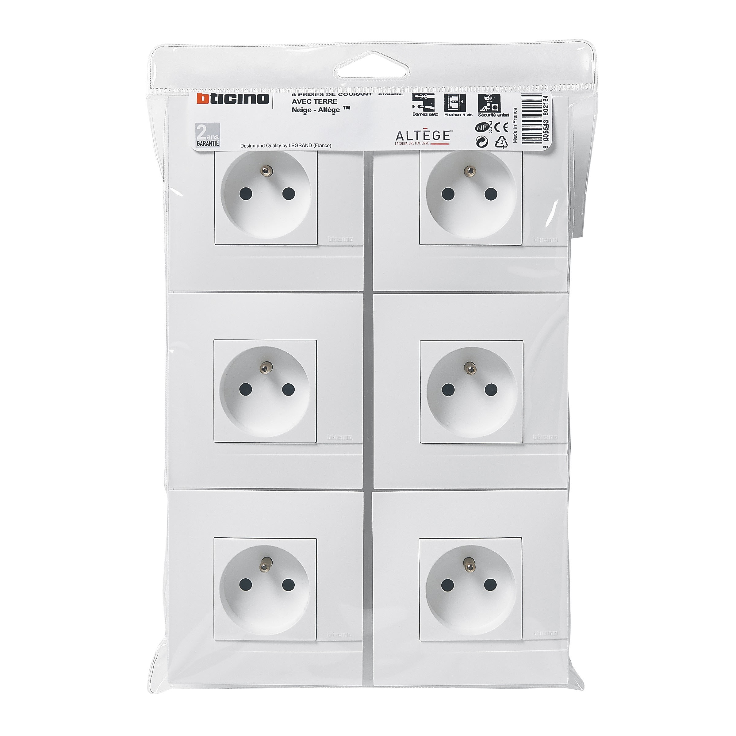 Bticino - Lot de 6 prises de courant avec terre Altège complet - finition Neige - BTAL62DL