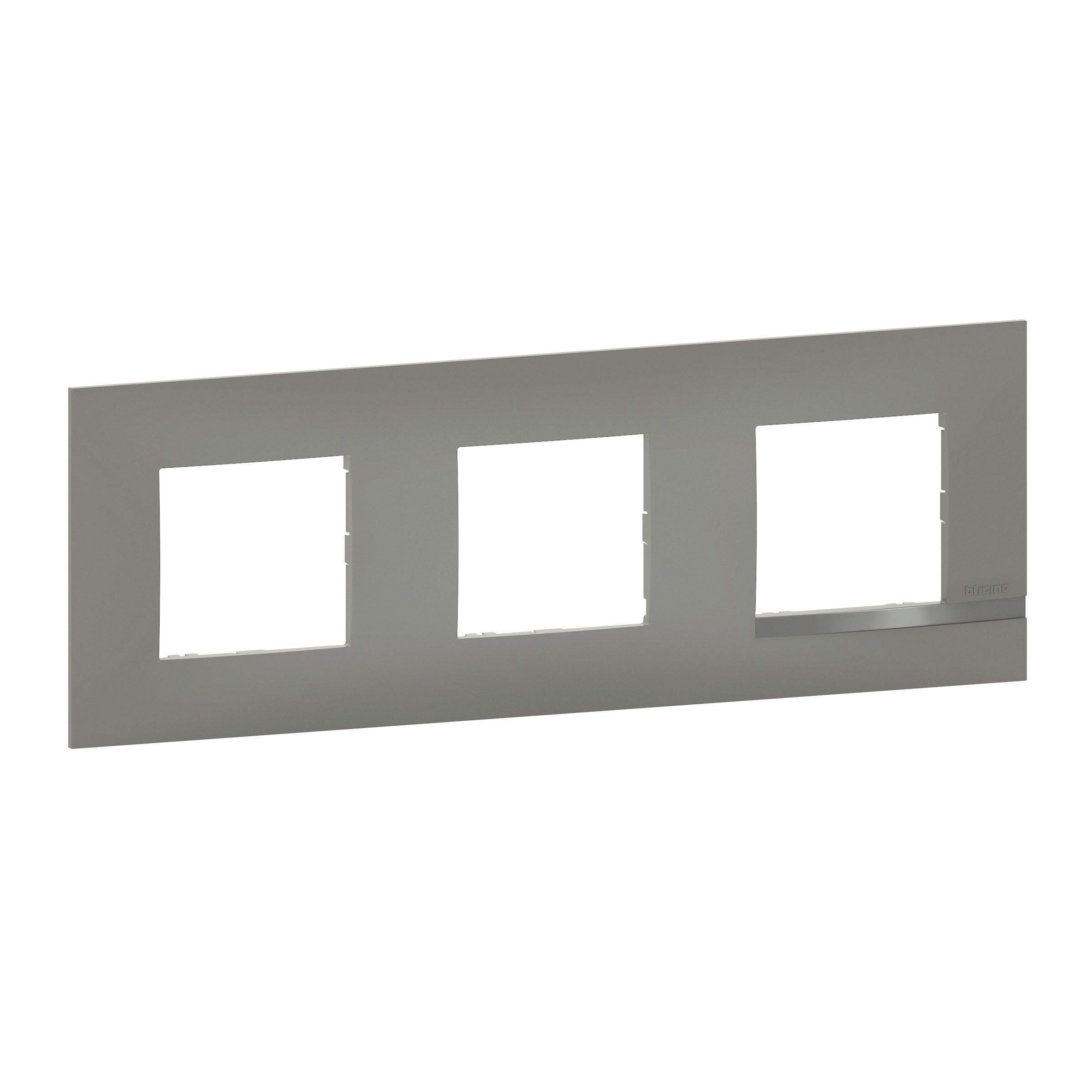 Bticino - Plaque Altège Classico 3 postes Nuage - effet aluminium avec liseré effet alu - BTAL9NA3