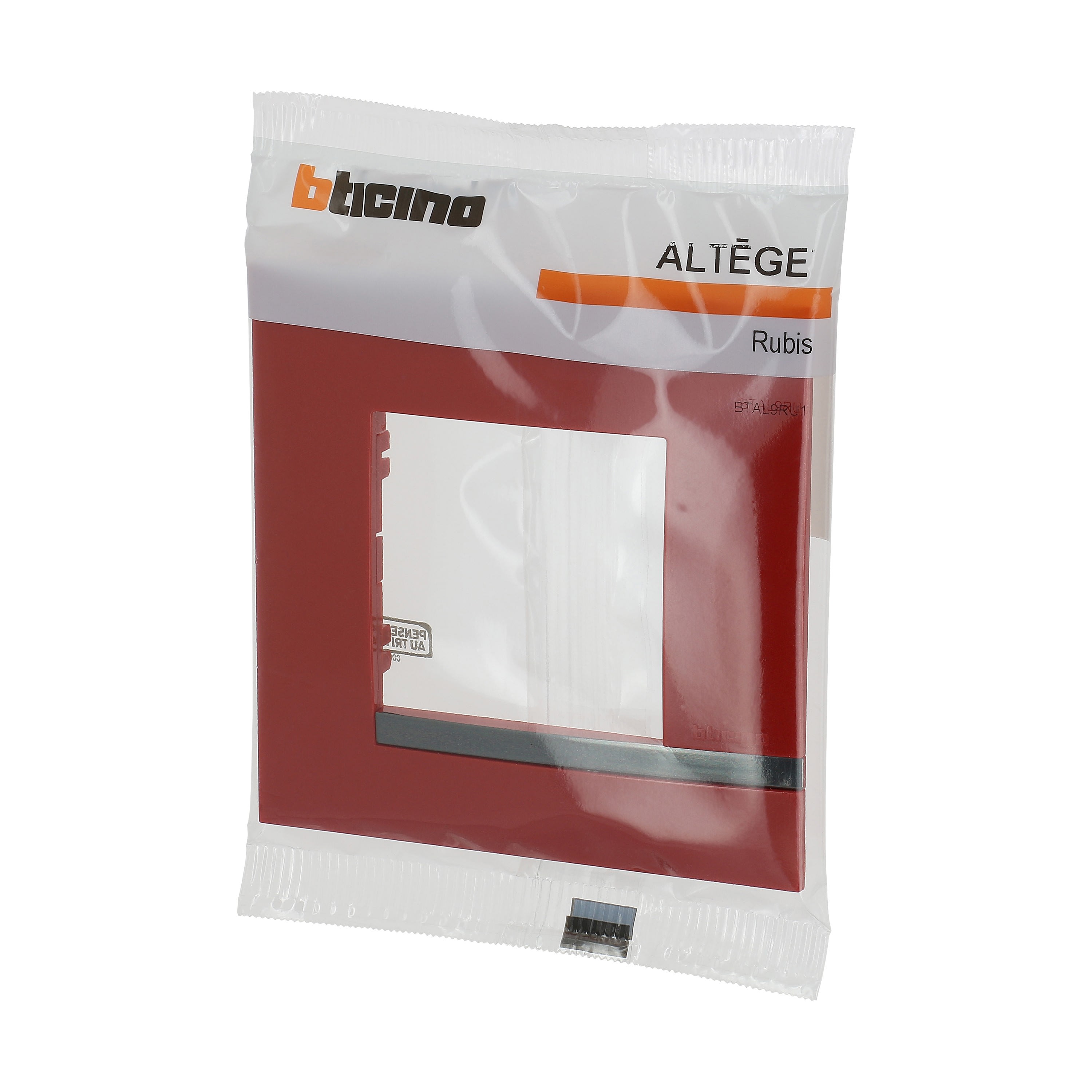 Bticino - Plaque Altège Déco 1 poste Rubis - rouge brillant avec liseré effet aluminium - BTAL9RU1