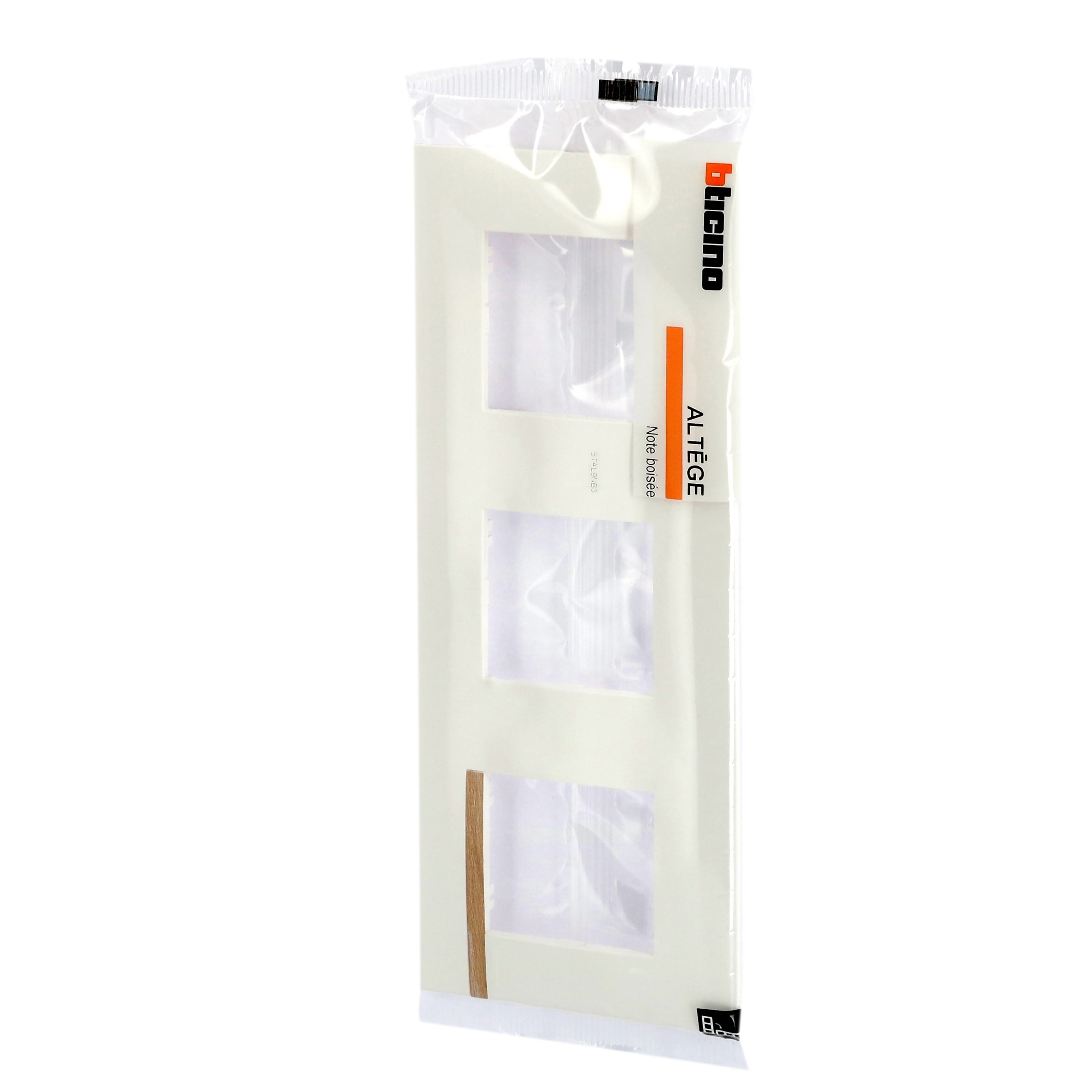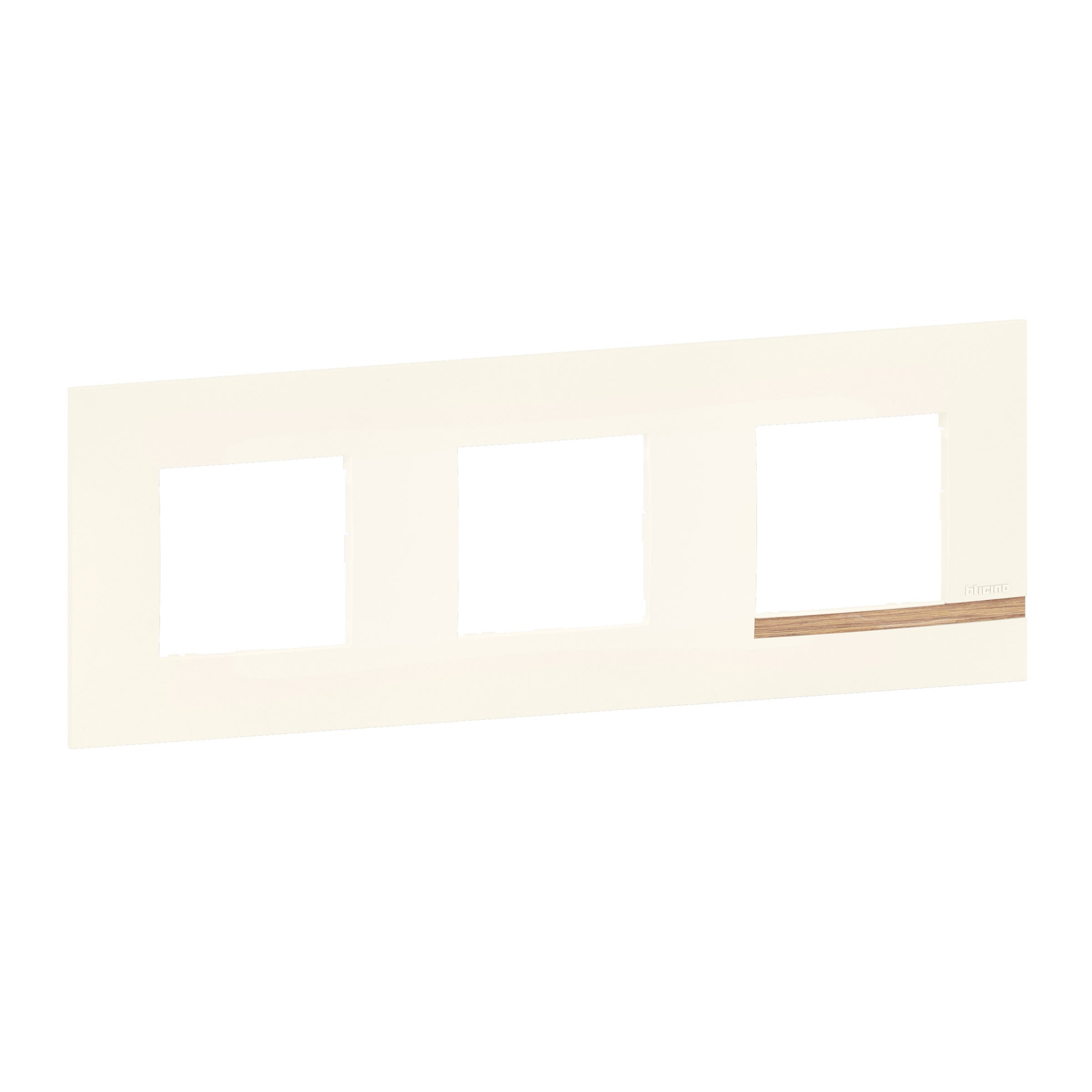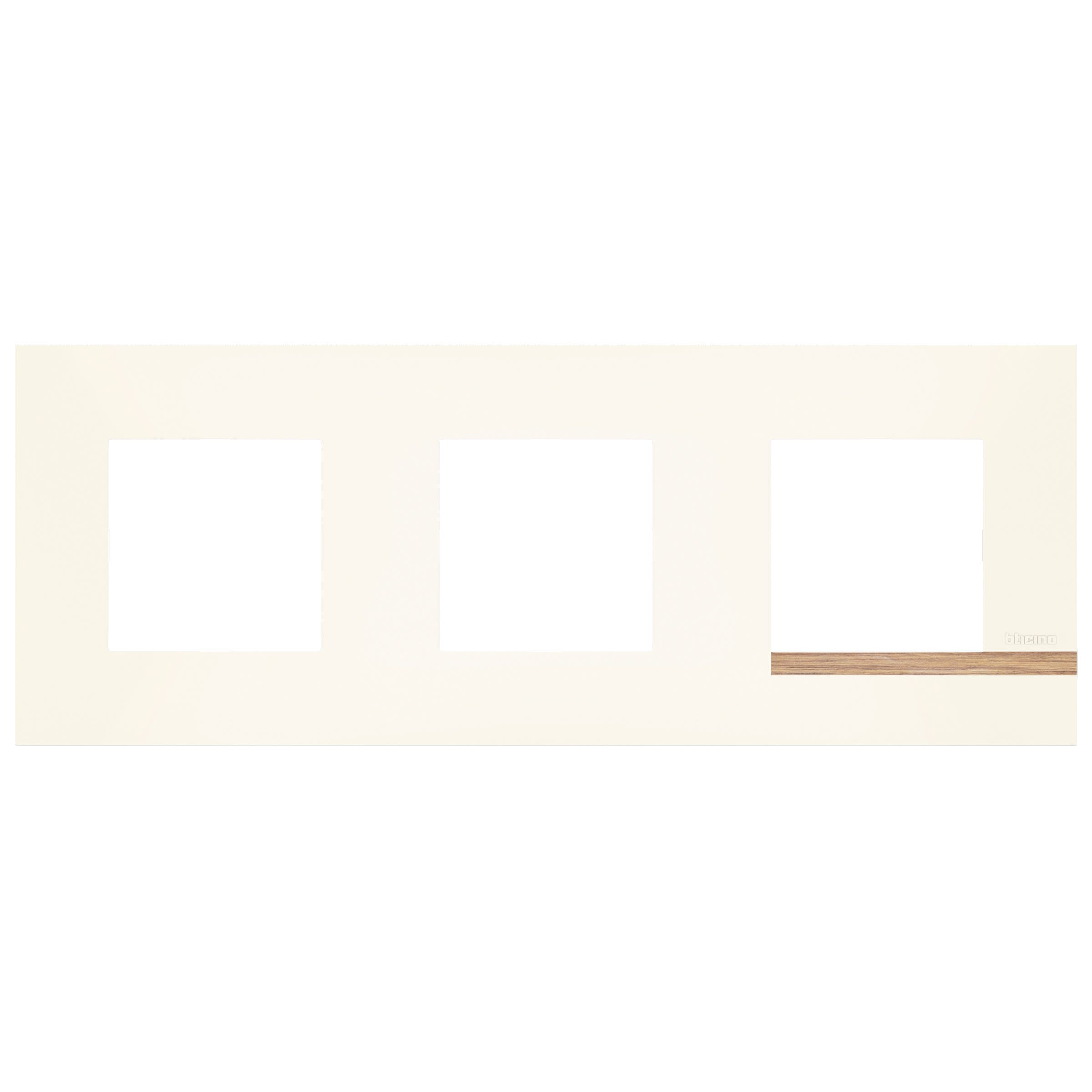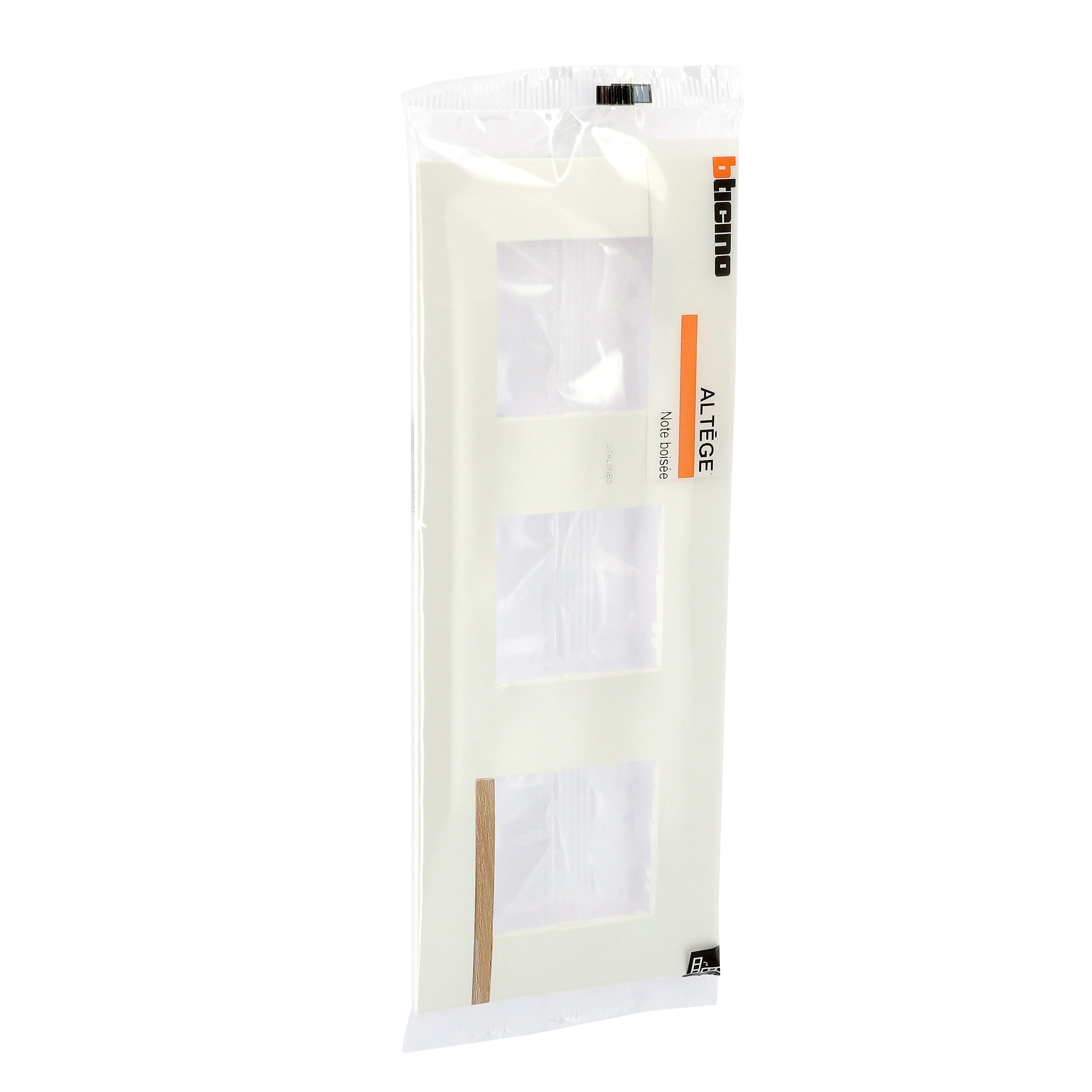 Bticino - Plaque Altège Mezzo 3 postes Note boisée - blanc satiné avec liseré effet bois - BTAL9NB3