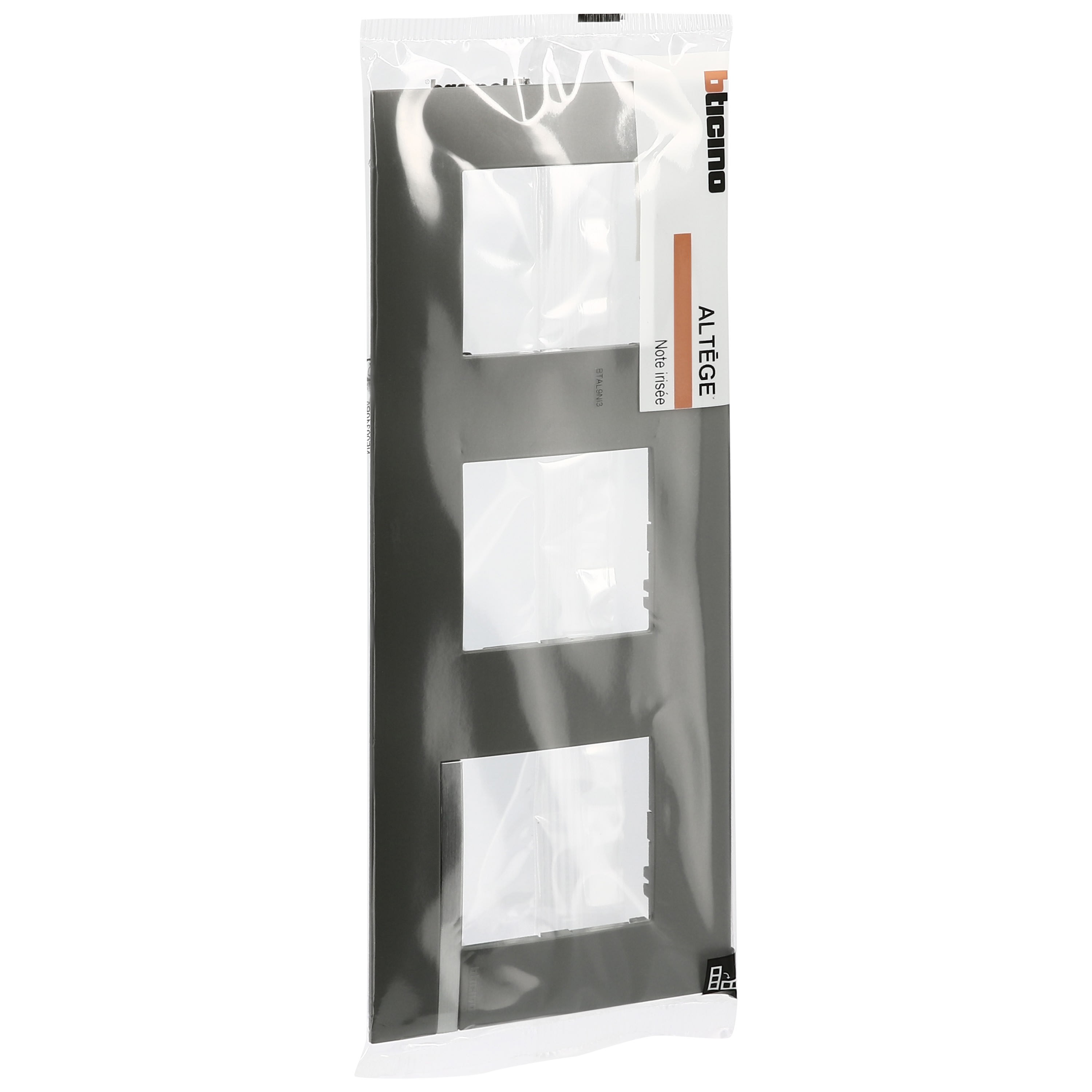 Bticino - Plaque Altège Mezzo 3 postes Note irisée -effet aluminium et liseré alu brillant - BTAL9NI3