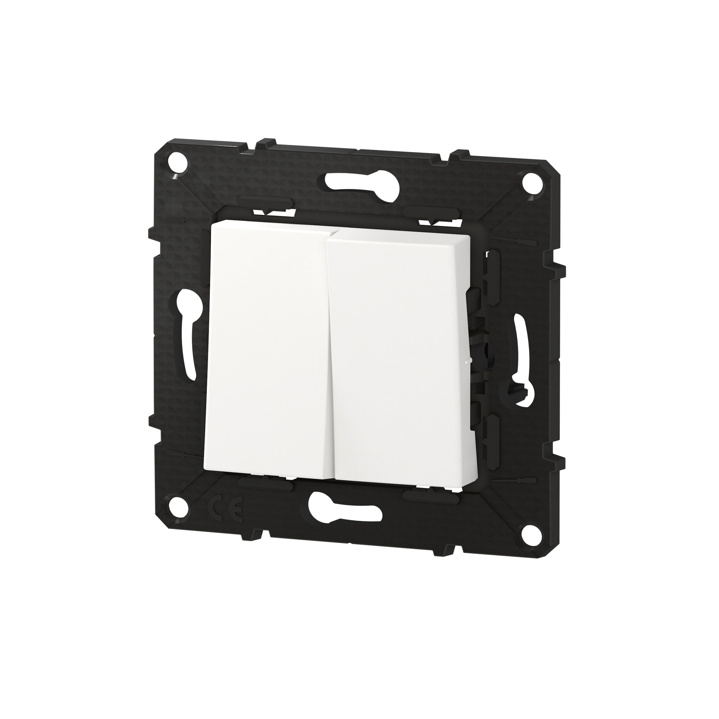 Poussoir 6A et interrupteur ou va-et-vient 10AX 250V Altège avec bornes automatiques livré avec support et enjoliveur finition blanc Neige, à équiper d'une plaque de finition