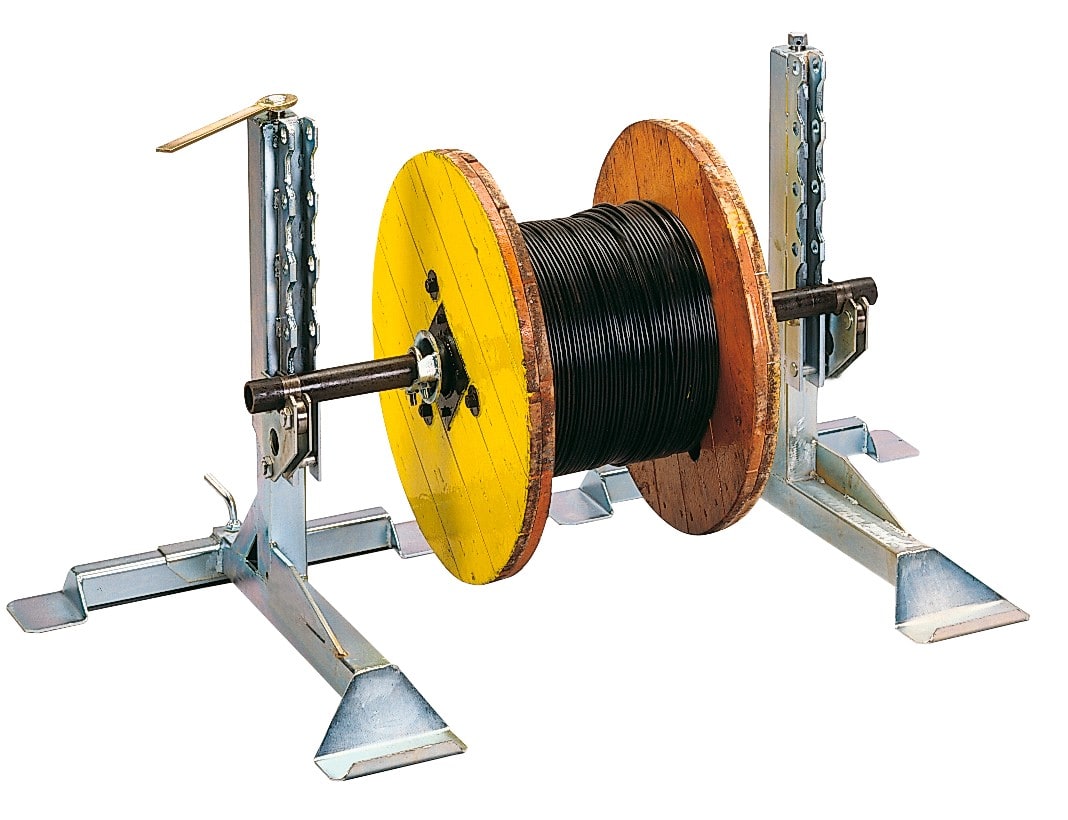 AXO 1600 : chandelles à vis sans fin pour dérouler les tourets jusqu'à 1,6 tonne - Ensemble complet (2 chevalets + axe + 2 centreurs) - Pied arrière démontable pour faciliter le transport - Fabrication très qualitative en acier galvanisé