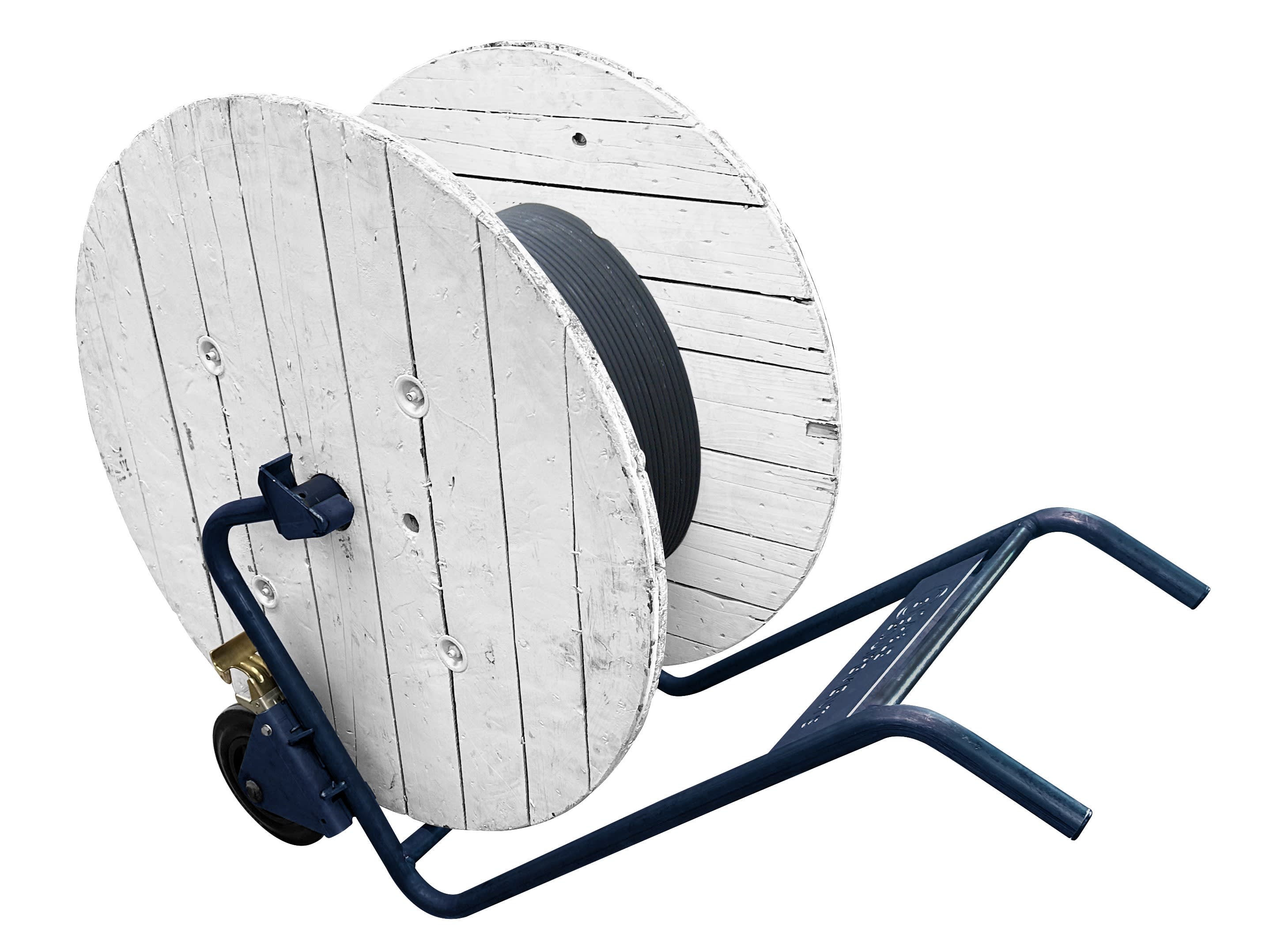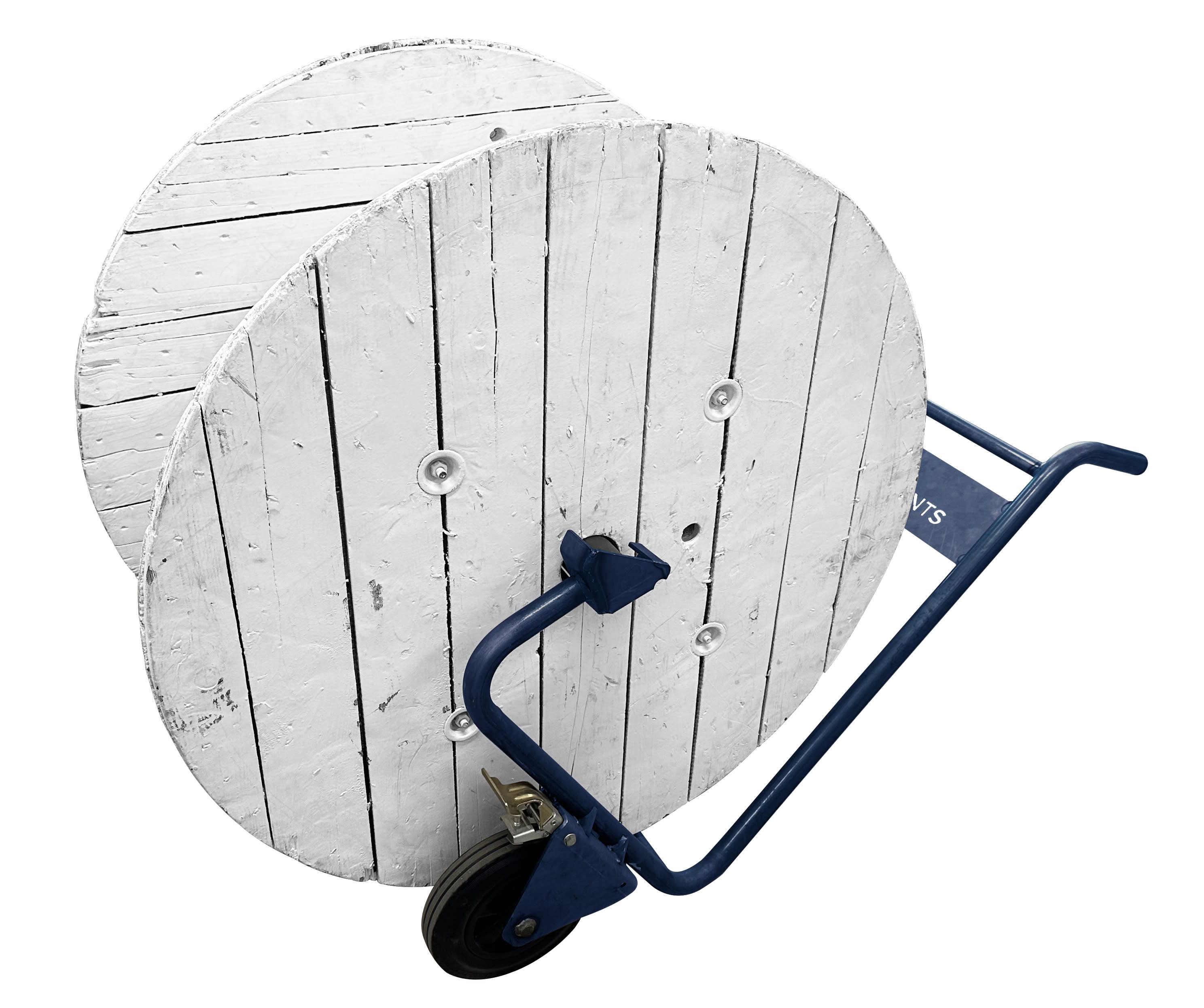 Chariot-dérouleur ST3 pour touret poids maxi 300 kg, Ø 550 à1050 mm, axe Ø60mmlargeur maxi 600mm - Permet de charger, déplacer et dérouler un touret - 2 rouesbandage caoutchouc Ø 250mm avec frein - En acier finition epoxy bleu texturé -