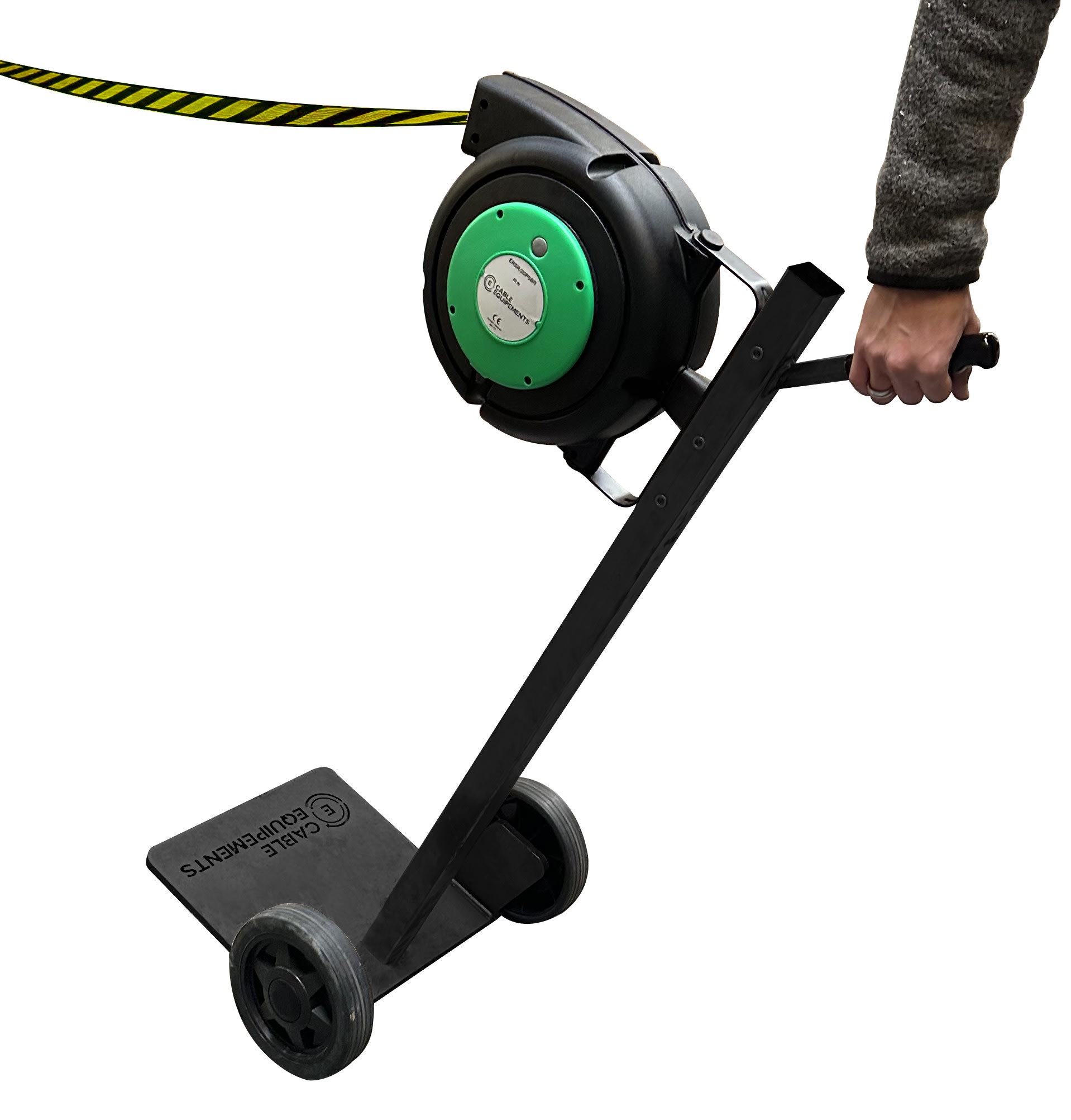 Cable Equipements - Chariot mobile de balisage avec enrouleur automatique - Ruban noir/jaune (20 m) - ERSR-C/20P5JN