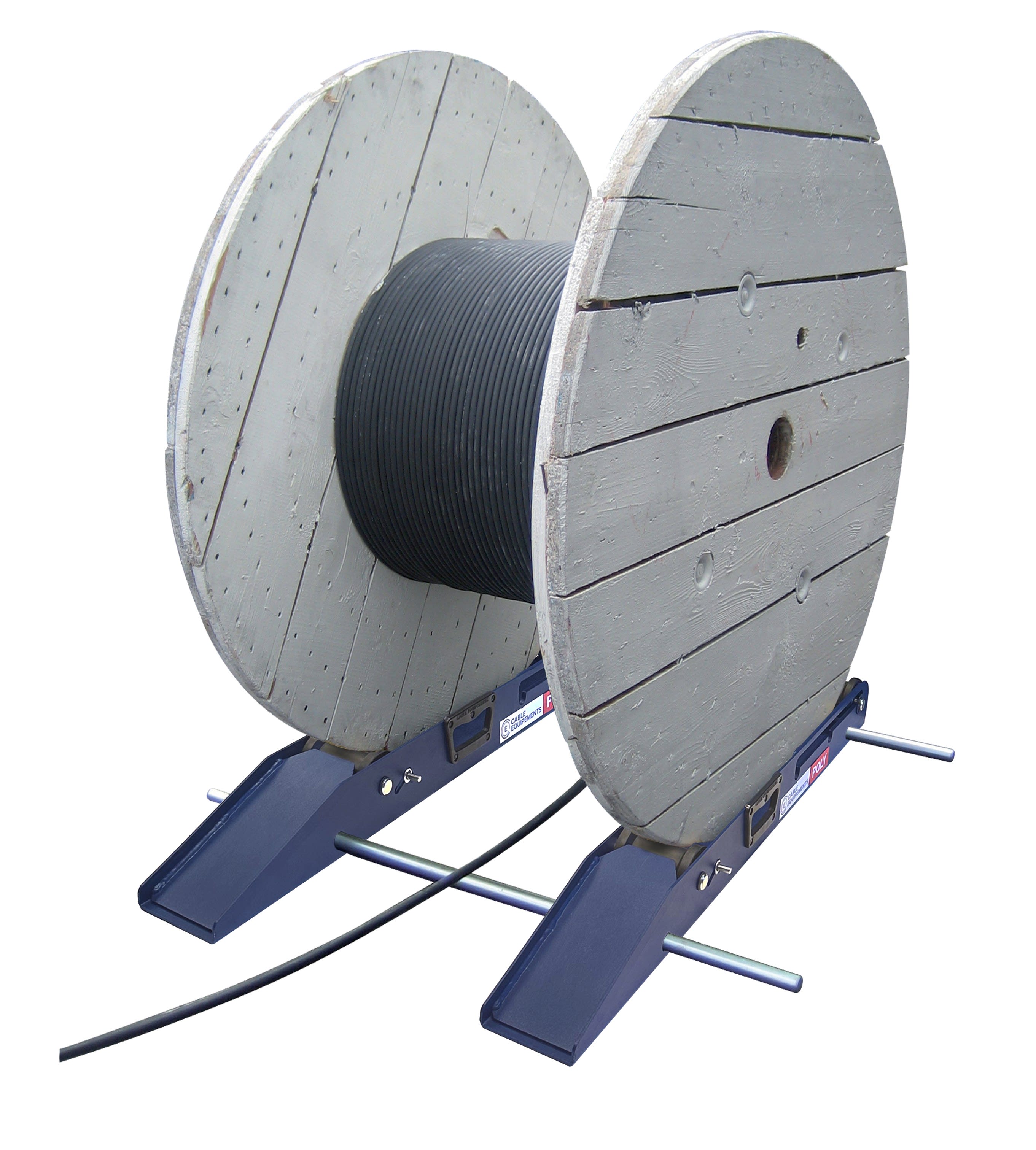 POLY 2500 : le dérouleur REGLABLE (un seul dérouleur pour tous les tourets), DEMONTABLE (facile à emporter sur les chantiers), COSTAUD (charge 2,5 tonnes)