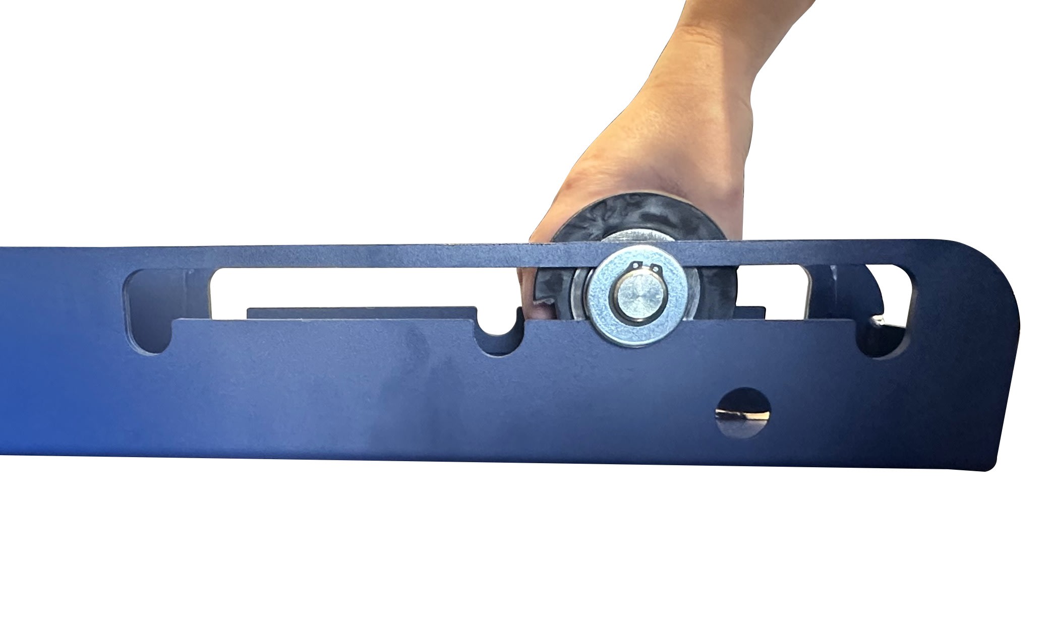 Dérouleur réglable (en un seul geste) et démontable POLY 2500 pour touret poidsmaxi 2500kg, Ø 500 à 1650mm, largeur maxi 950mm - Galets polyuréthane à réglagerapide 3 positions selon Ø- 2 sabots + 2 barres stabilisation (transport facile)
