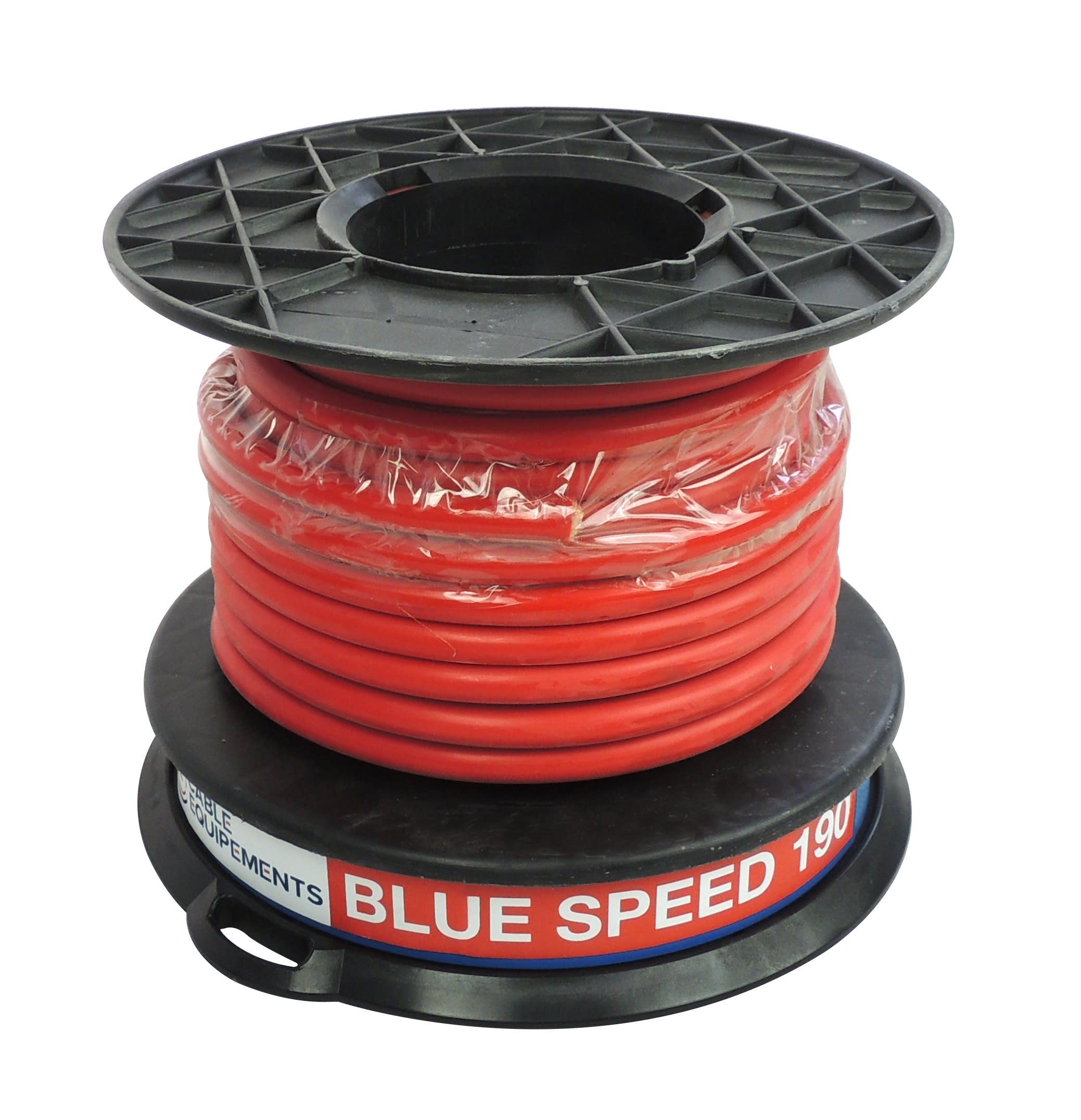 Dévidoir vertical BLUE SPEED 190 pour touret et bobine poids maxi 190 kg -Léger (1,2 kg), stable et robuste - Déroulement touret en position horizontale -Ø plateau 250 mm - Ø de l'axe 50mm ou 12mm (sans la protection) - Coloris bleu