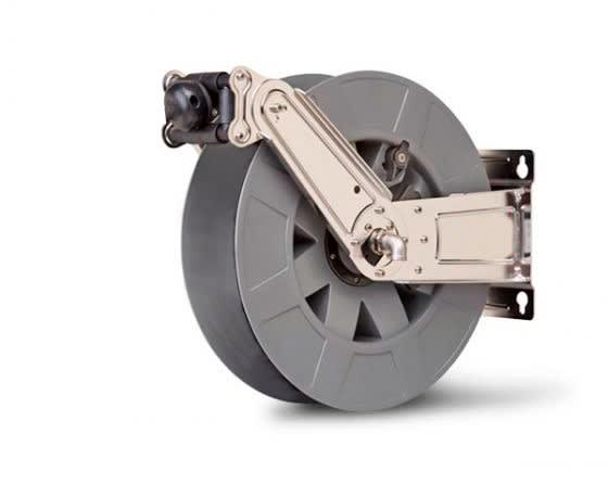Enrouleur à rappel auto gamme YP9 FULL INOX- Livré SANS TUYAU -Maxi 20 bars - Pour air eau (-15°C/+50°C) - Raccords entrée 1/2" F,Support fixe en Inox, bride pivotante Inox en option