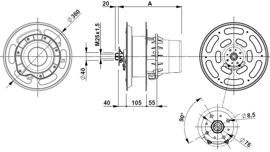 Enrouleur automatique GREEN REEL 22 - 10m - Prises T2 - 22kW - Triphasé 32A -Enrouleur IP65 si installation conforme,prises IP44 - 5G6²+1x0,5² -Carter acier-Bride pivotante et cliquet - Usage horizontal (si vertical, choisir bride fixe)-